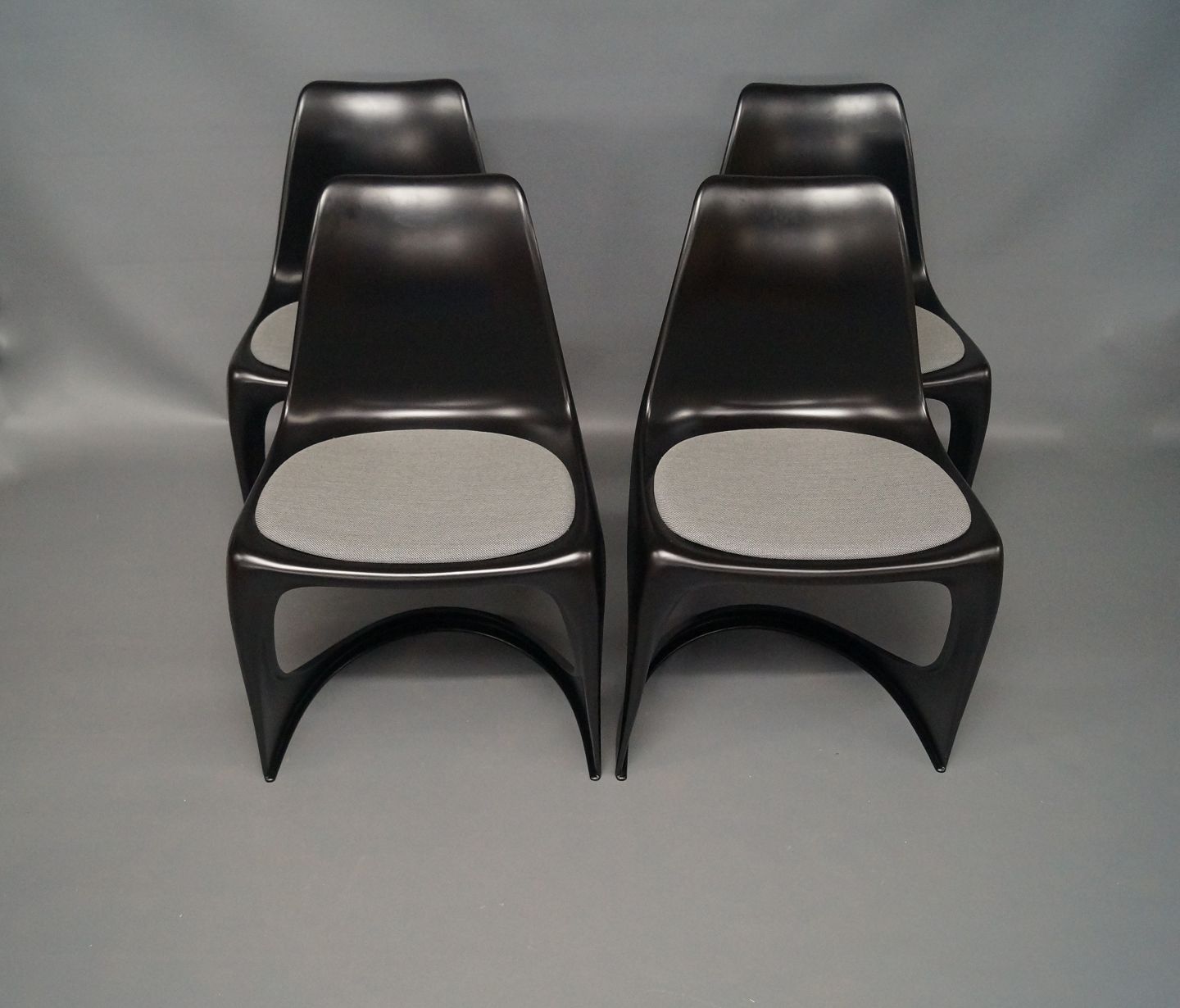 SoldBlack design plastic chairs with seat of fabric designed by Steen Østergaard and manufactured at Nielaus. We have 3 left.