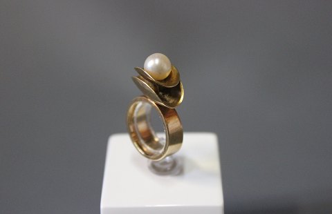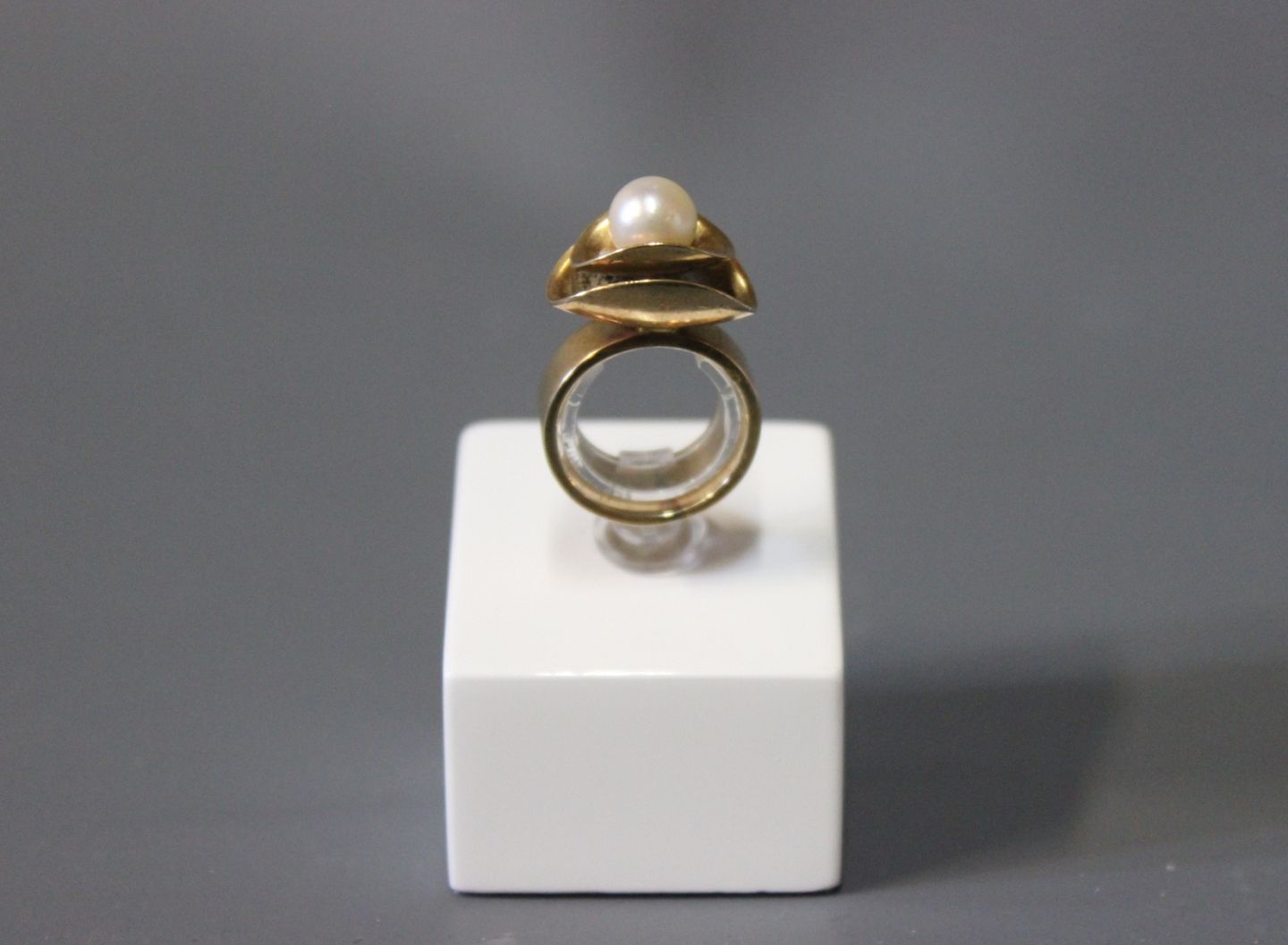 14 ct. gold ring with a cultured Pearl, stamped H.O.