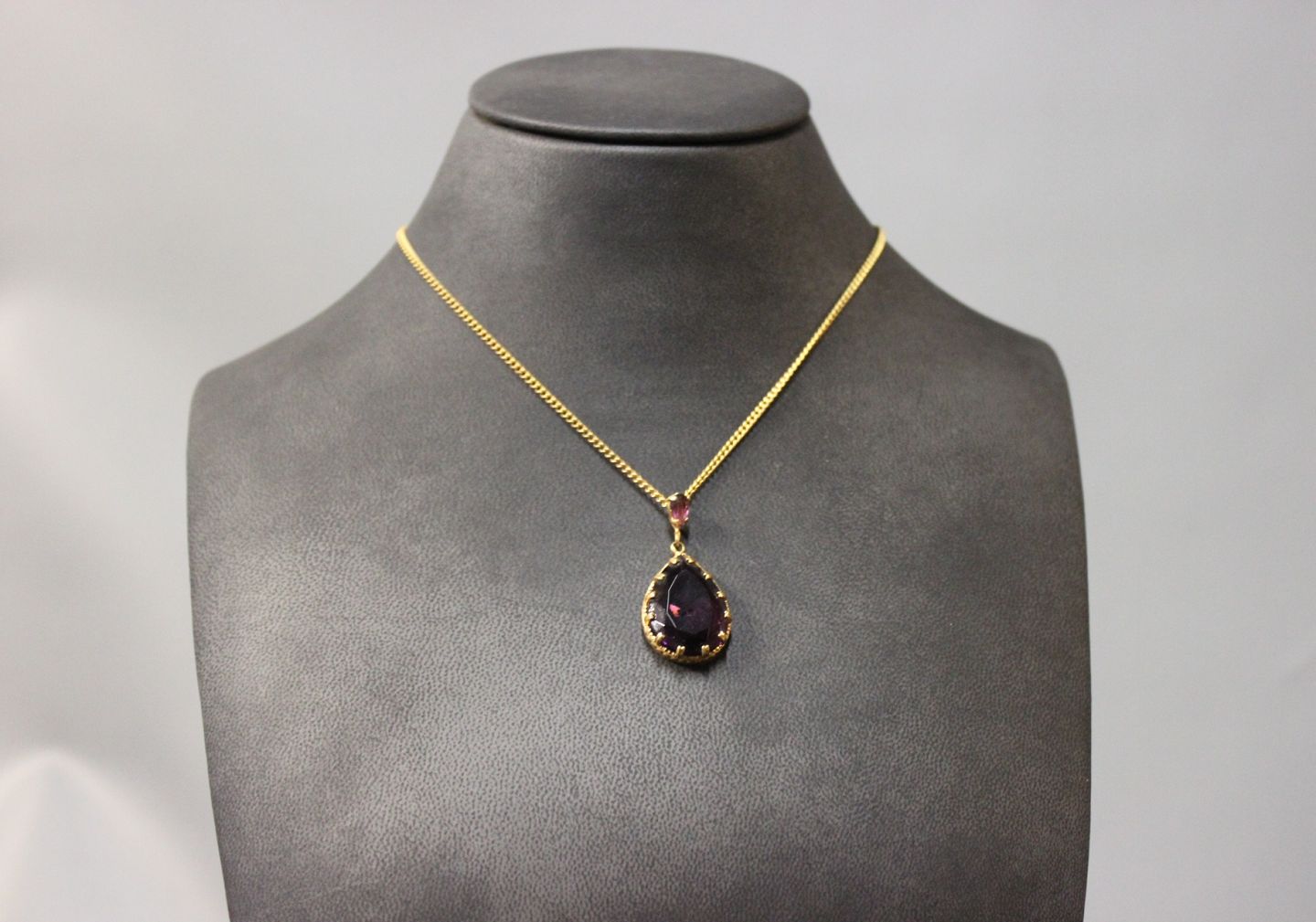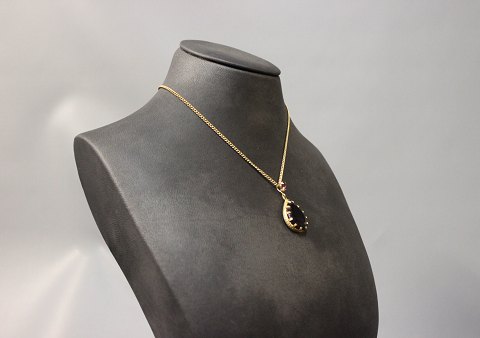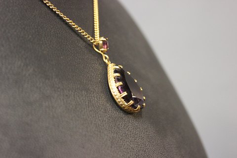 Kæde med dublet guld vedhæng med stor ametyst.