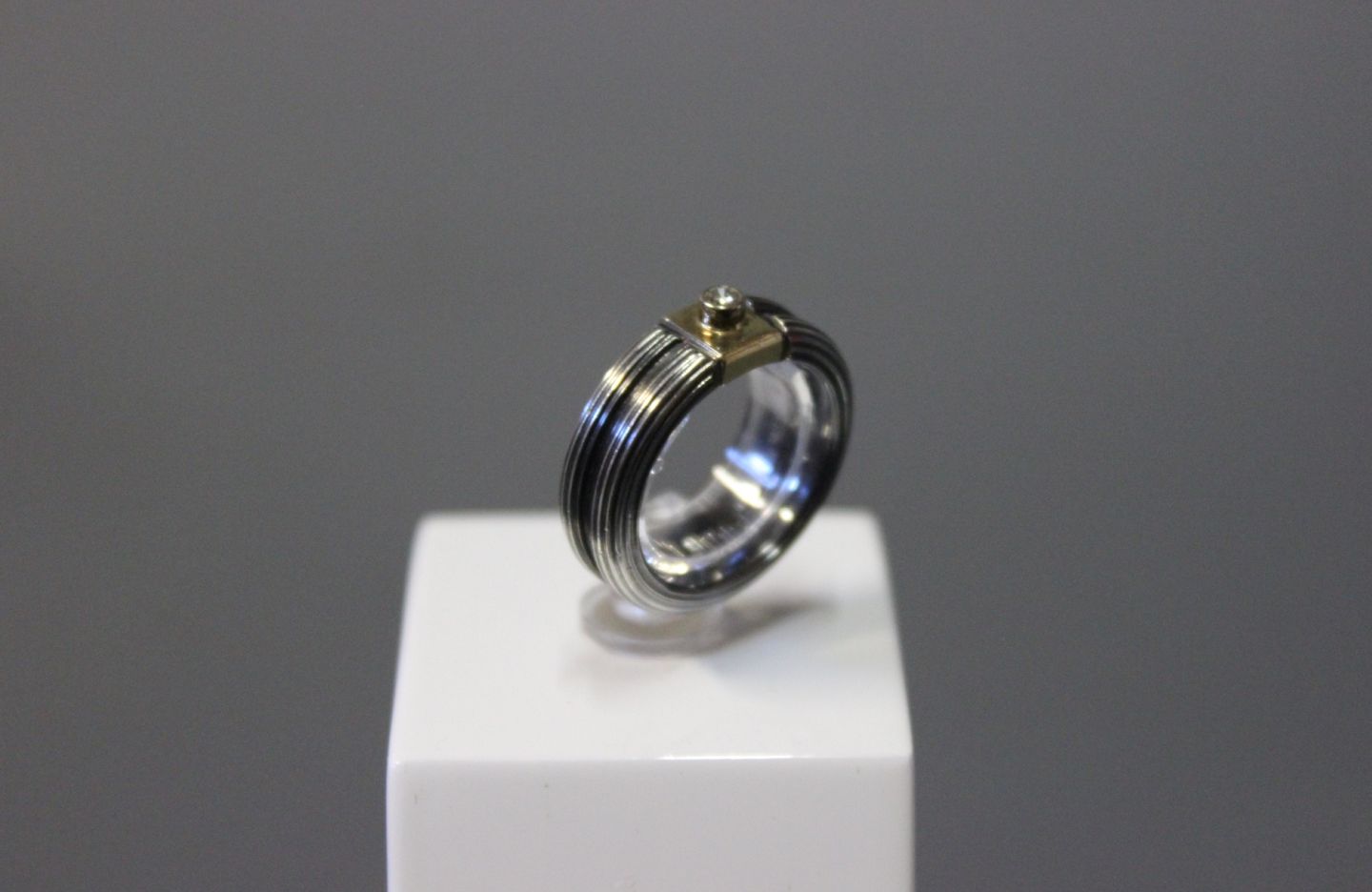 Ring in silver with 0,5 ct. diamond in gold sockets.