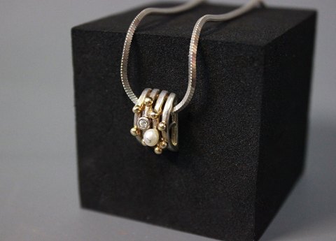 Halskæde i 925 sterling sølv samt vedhæng i sølv dekoreret med 14 kt. guld.