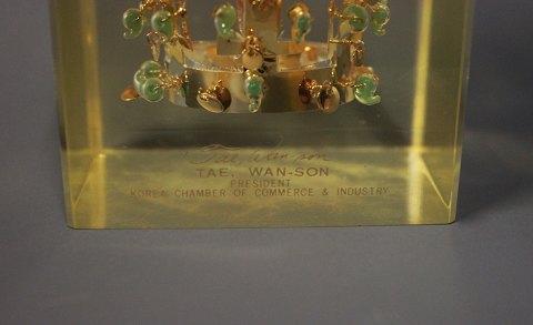 Honorary award, ingraved, Tae Wan-Son President Korea chamber of Commerce and industry.
