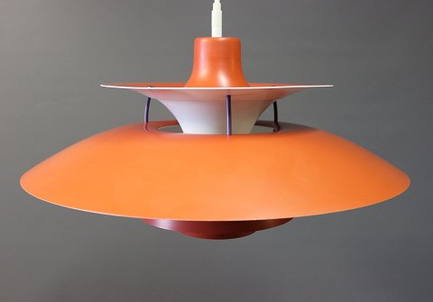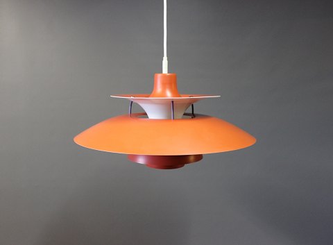 SoldPH5 pendant in a redish color designed by Poul Henningsen and manufactured by Louis Poulsen.
