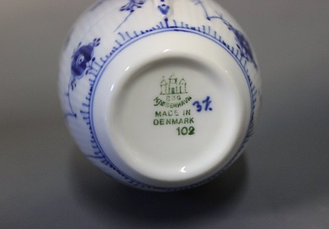 B&G musselmalet/blåmalet riflet kaffekop samt underkop, #102.