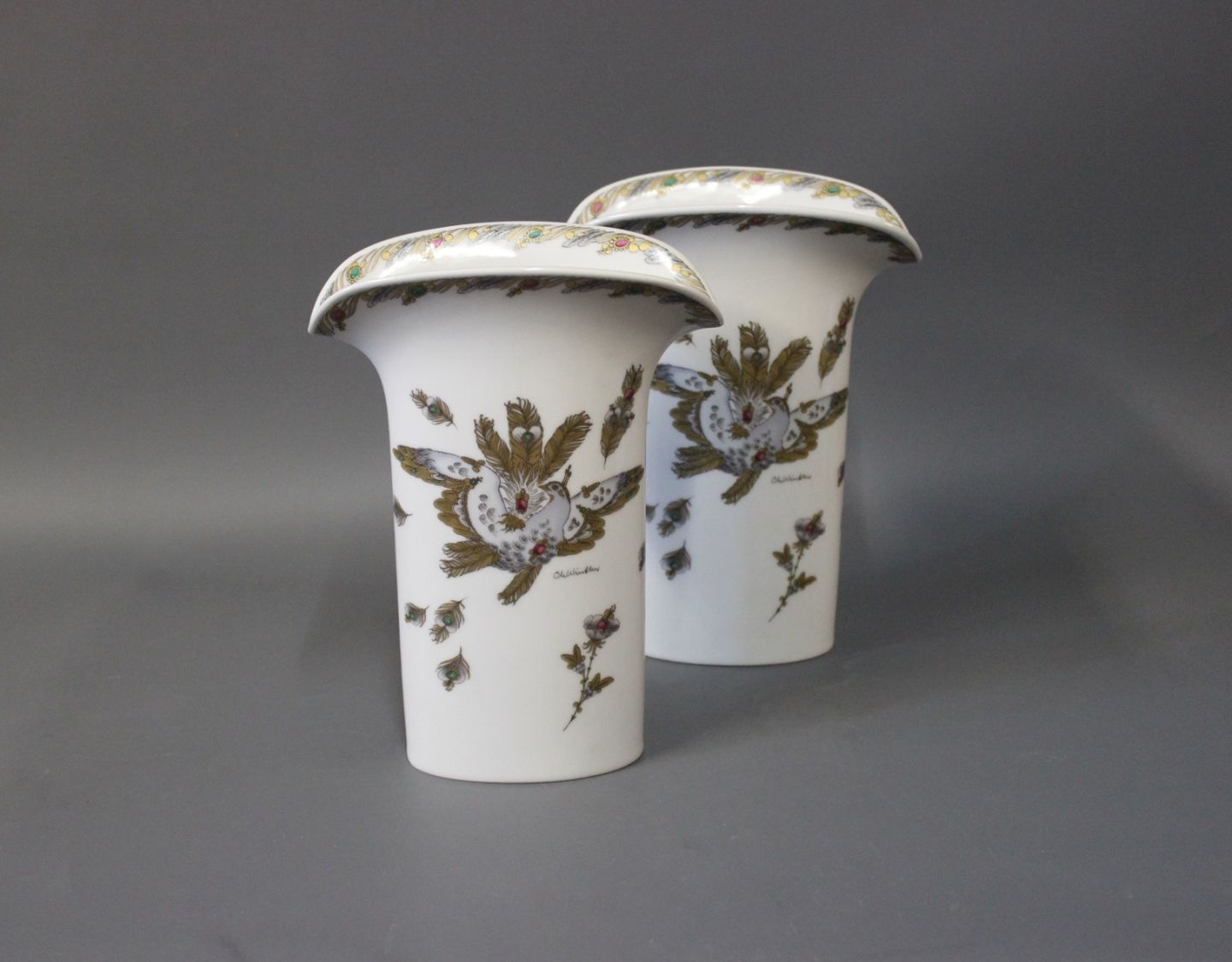 Et par fine hvide dekorerede vaser fra Hutschenreuther.