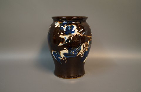 SoldSmall ceramic dish with a dog figurine in Brown and green colors by Michael Andersen & Son.