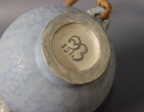 Ceramic jug in light colors with a paper cord handle by Arne Bang, no.: 151.