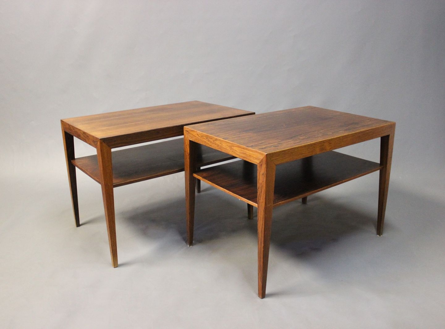 SoldA set of side tables with shelf in rosewood by Severin Hansen for Haslev furniture factory. The tables are with the number 43.