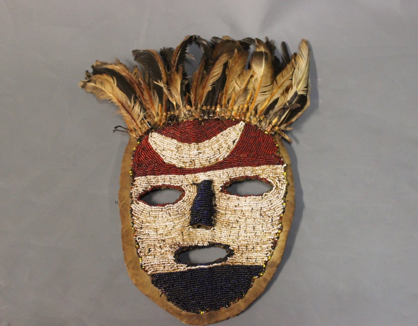 SoldAfrican masks with Pearls and feathers probably from the Congo and the 1960s.