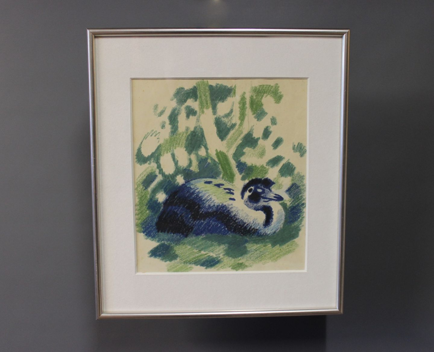 Litografisk tryk i flotte farver af en påfugl, ingen signatur.