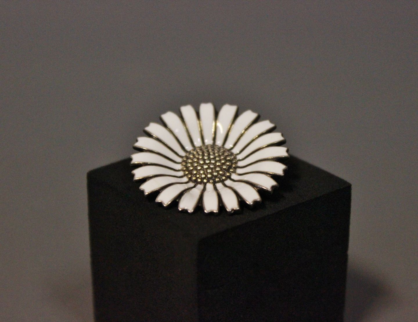 Marguerit broche i 925 sterling sølv og emalje af A. Michelsen.