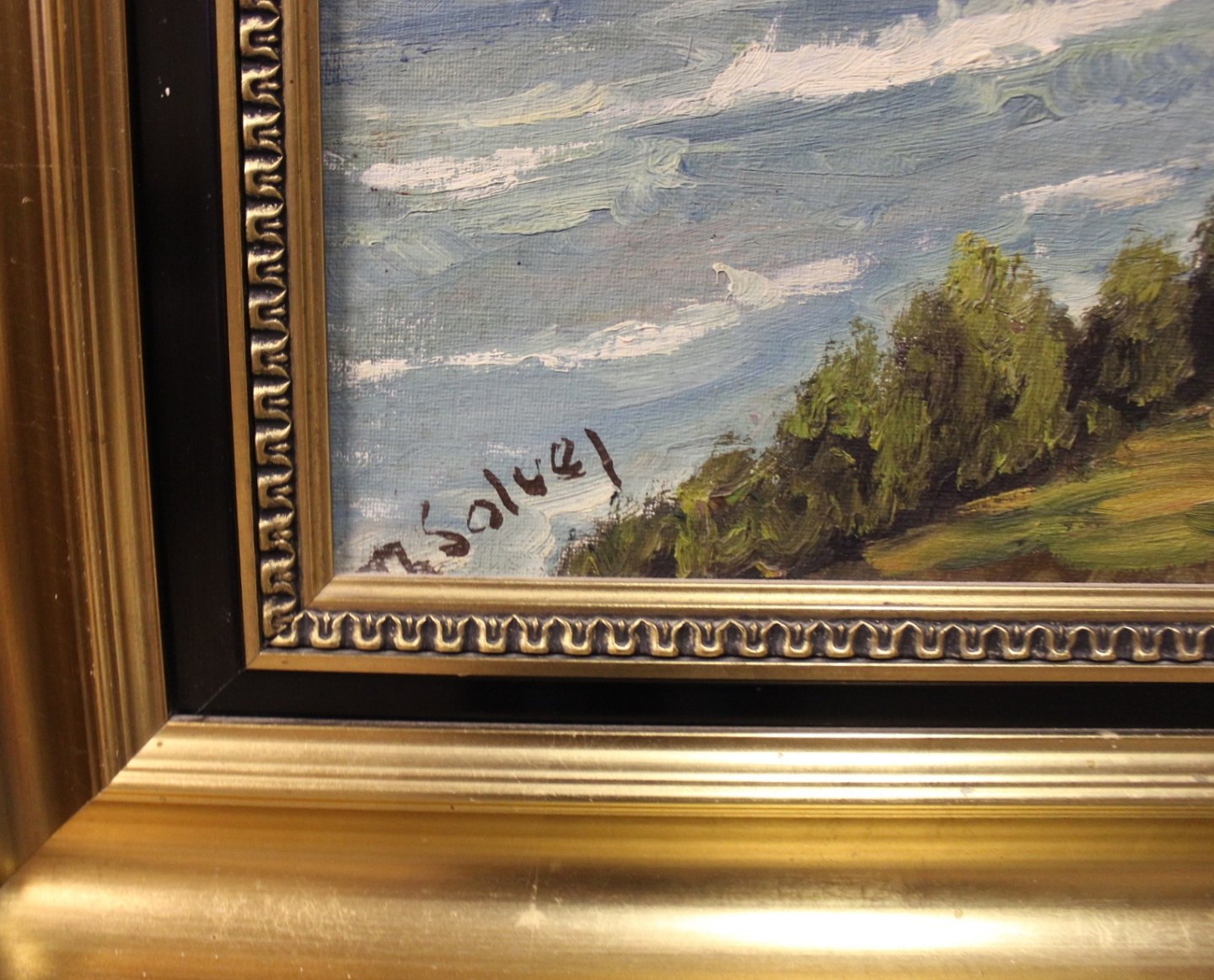 Oil painting on canvas of coast landscape signed Solvej.
