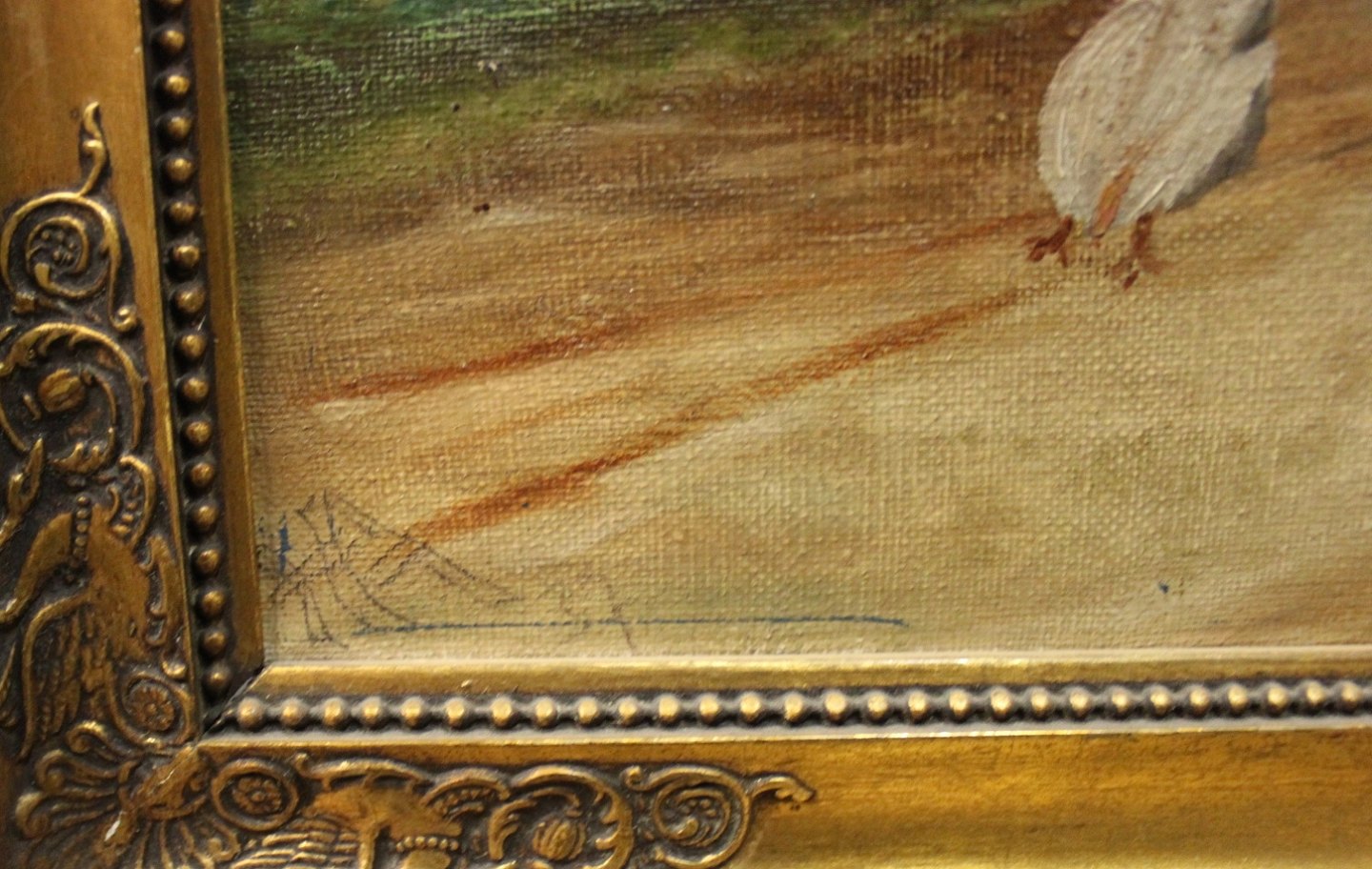 Oliemaleri på lærred af landbillede af ukendt kunstner.
