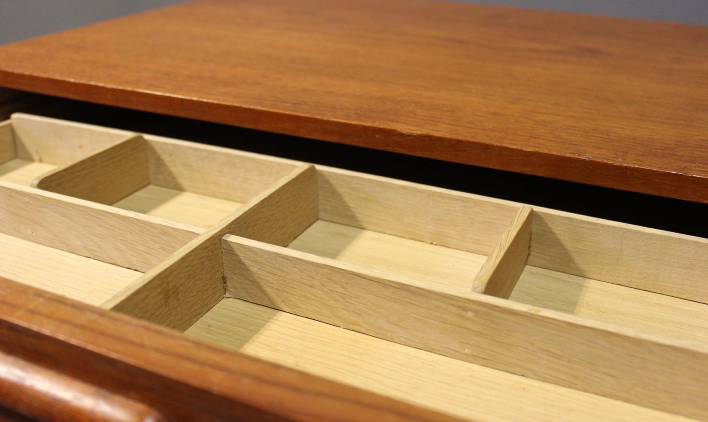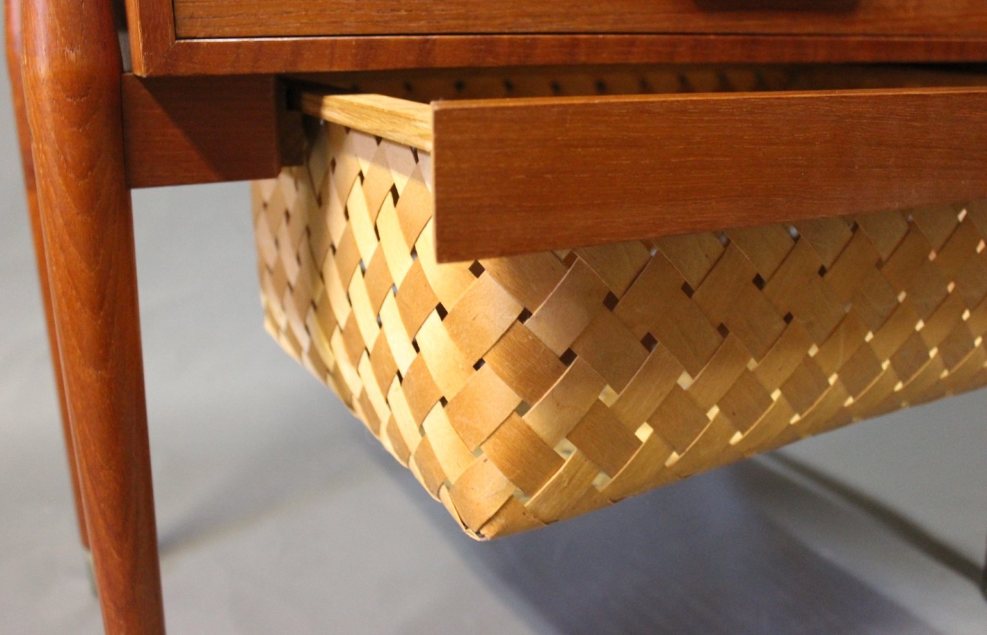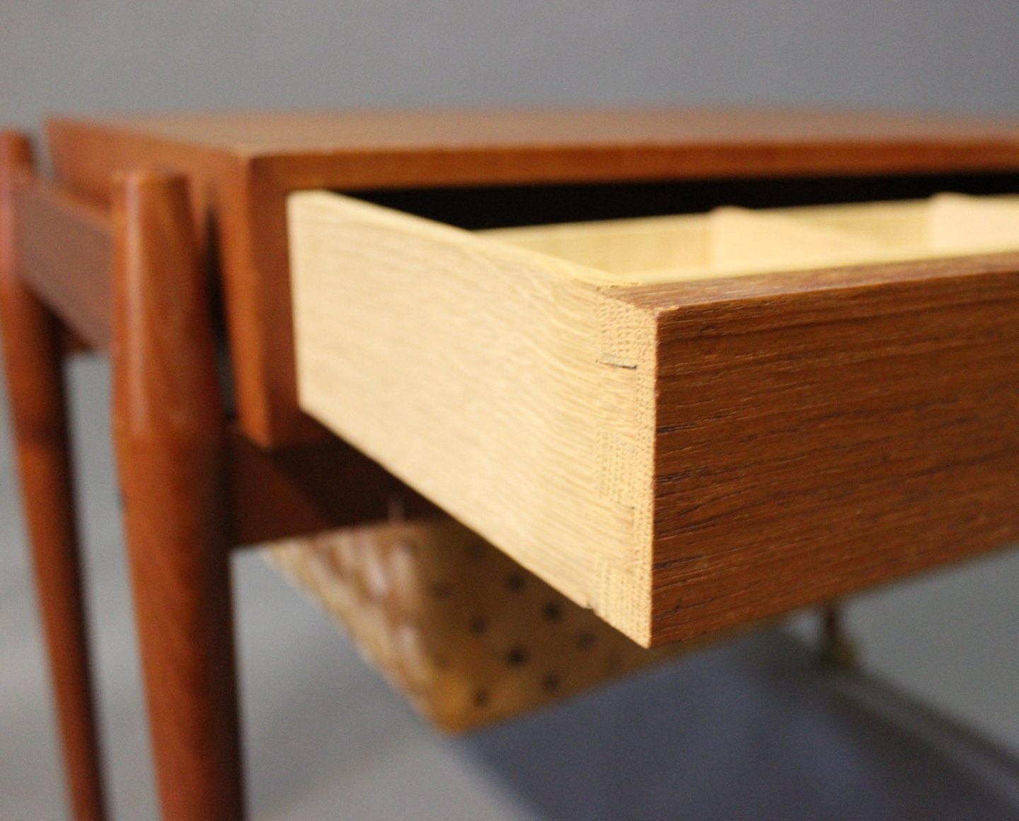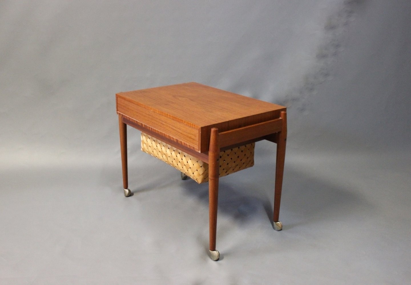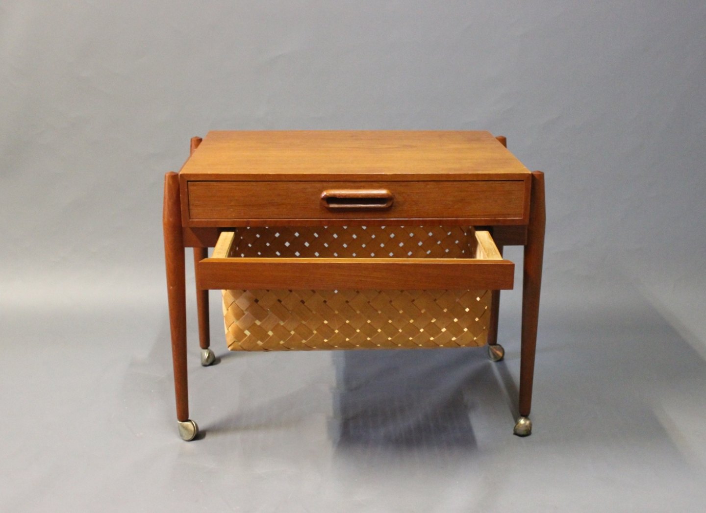 SolgtLille sybord i teak med hjul af Dansk Design fra 1960erne.