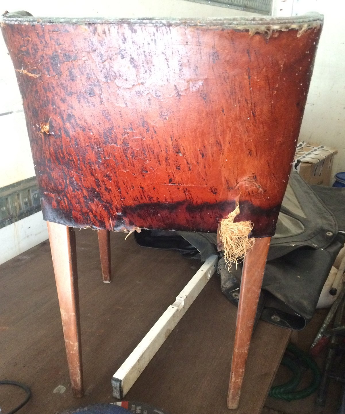 Denne stol af Egon Bro Pedersen har vi ompolstret samt ordnet træværket efter kraftig brandskade.