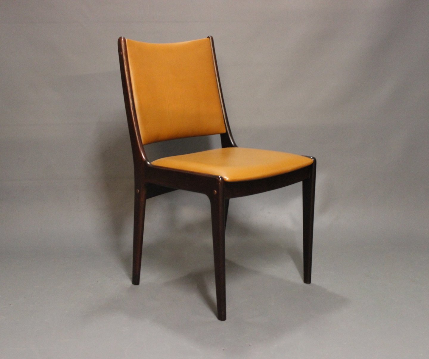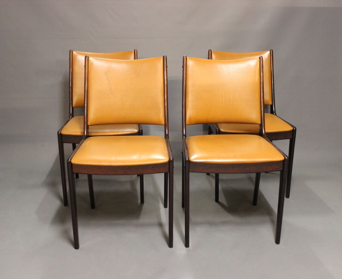 SoldA set of 4 dining room chairs in polished mahogany and cognac colored leather. The chairs are of danish design from the 1960s.