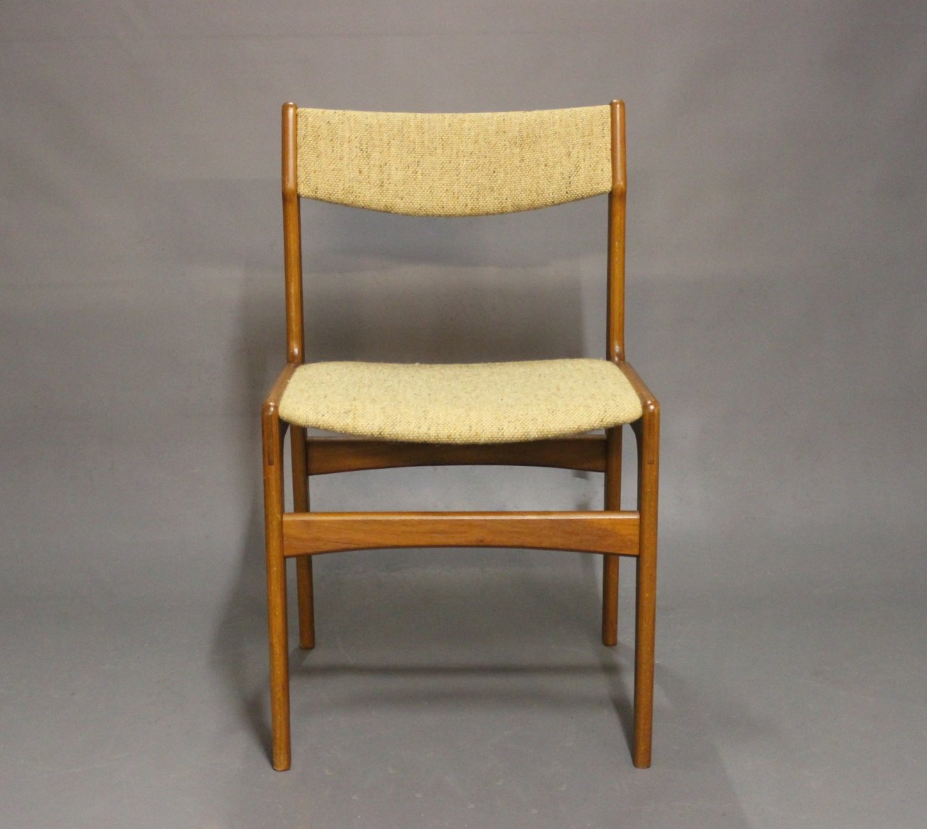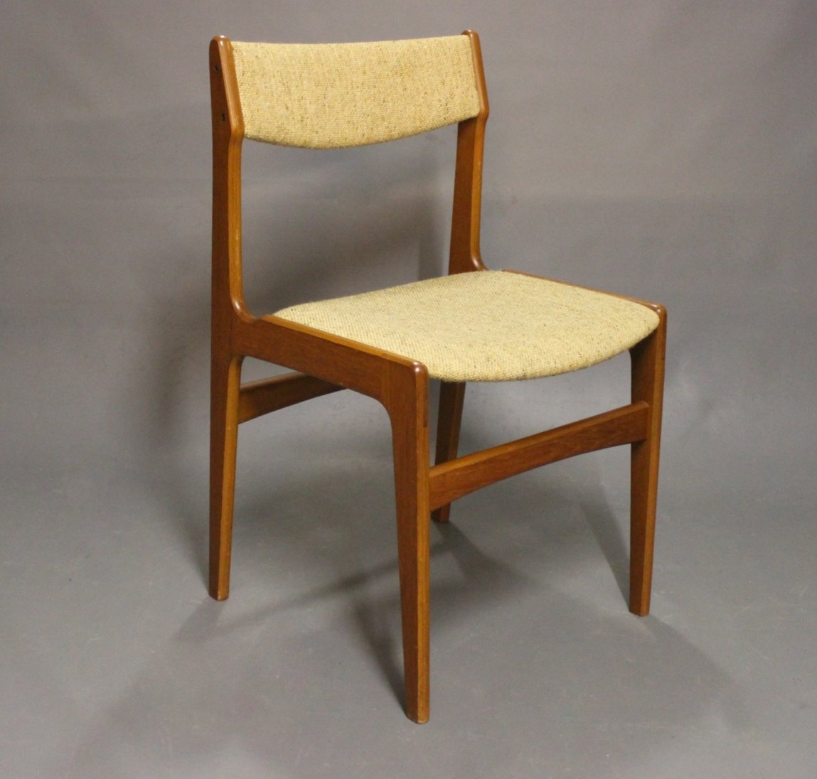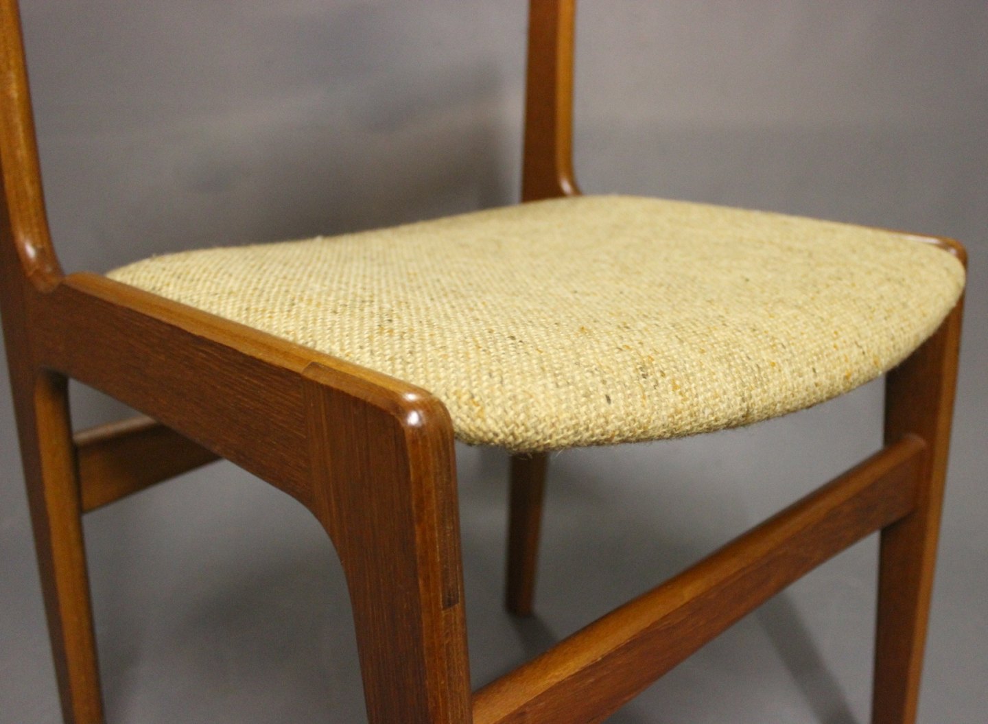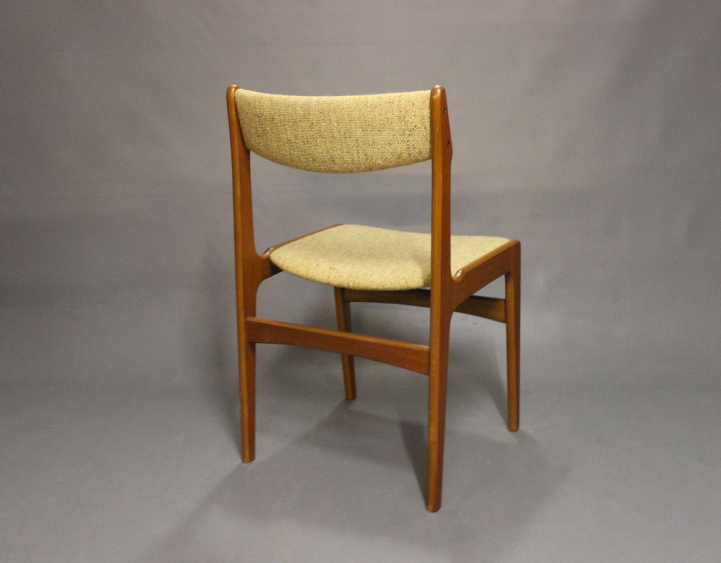 SoldA set of 6 dining room chairs in teak and light wool designed by Erik Buch and from the 1960s.