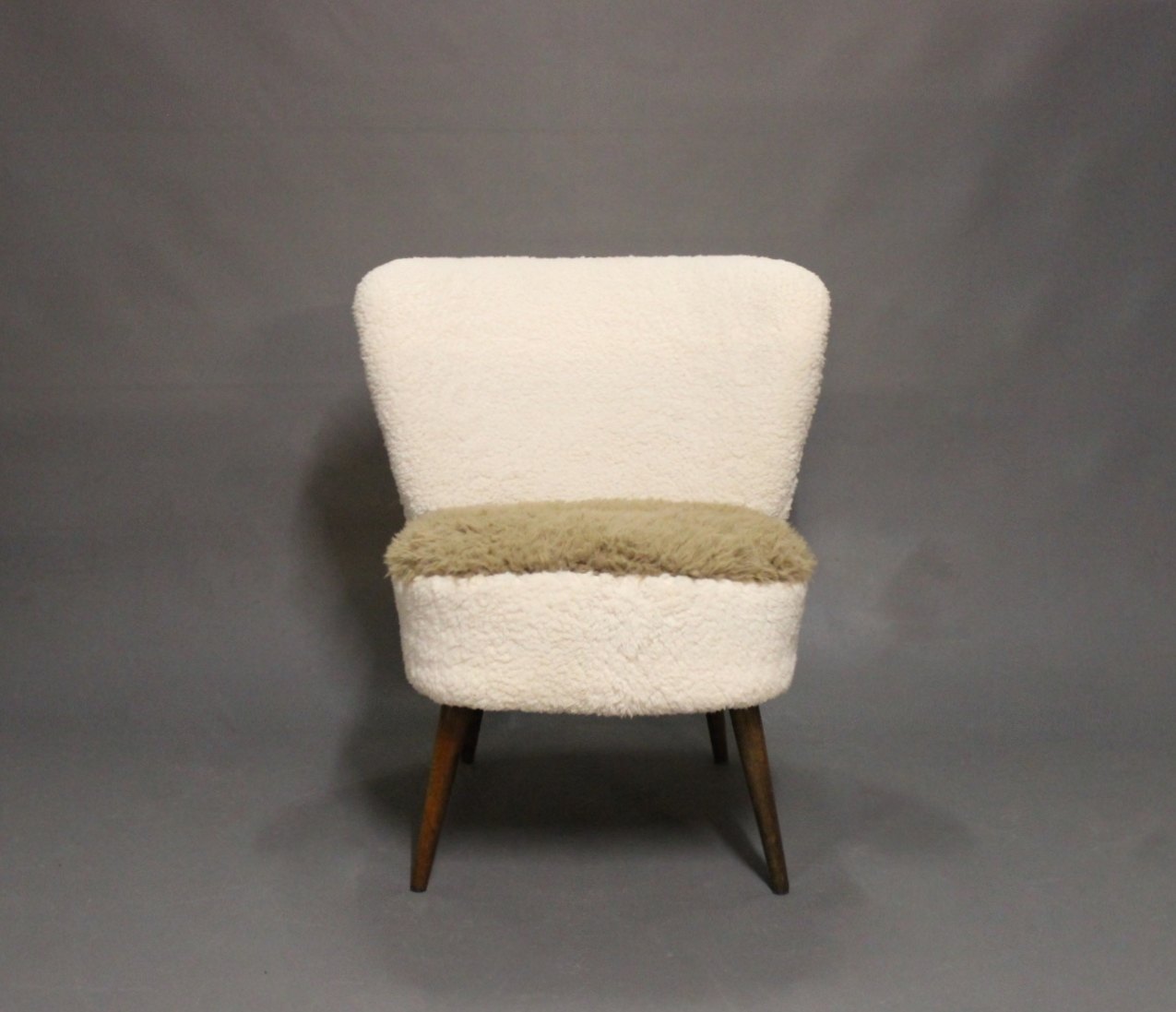 SoldLow easy chair in light fabric and legs of rosewood of Danish Design.