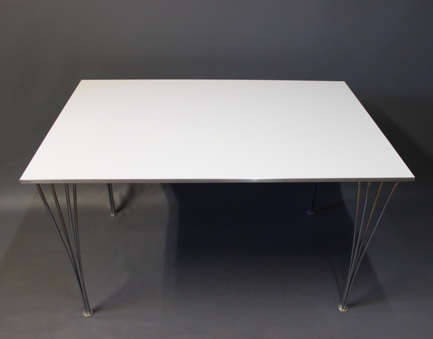Rektangulært spisebord designet af Piet Hein, Arne Jacobsen og Bruno Mathsson i 1960erne og fremstillet af Fritz Hansen i 1994. Bordet er med plade af hvidt laminat med kant af aluminium, monteret med spændben i forkromet stål.