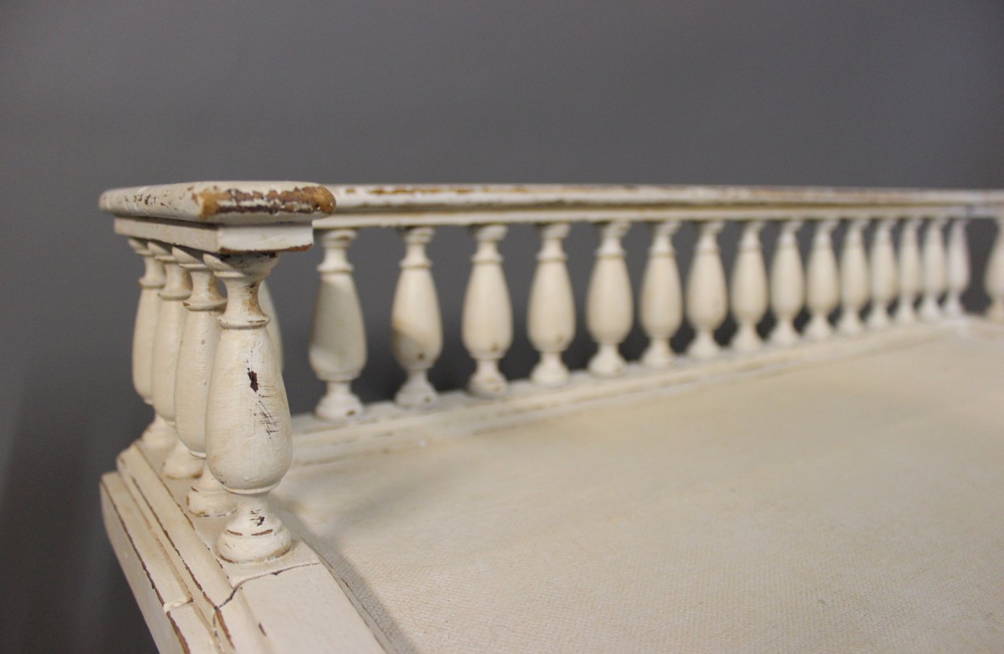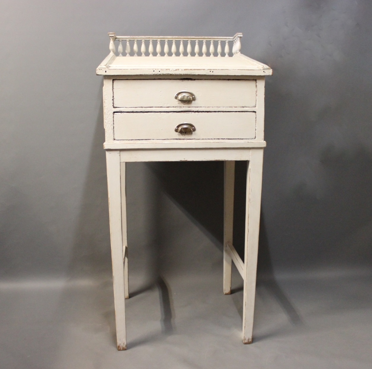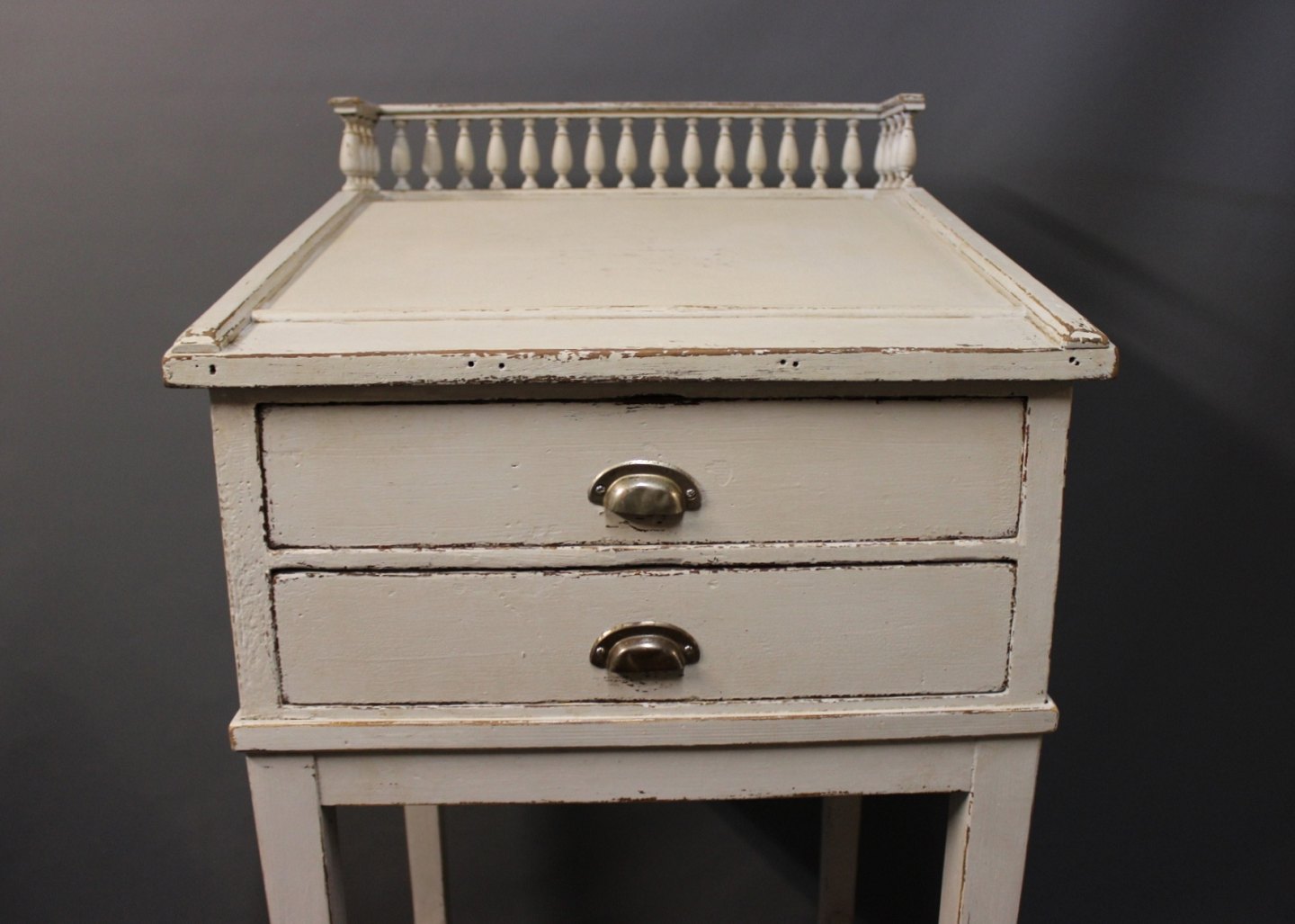 Gråmalet skrivepult i stilen gustaviansk fra 1840erne. Skrivepulten er fritstående samt er den stemplet med Nordisk Films Kompagni.