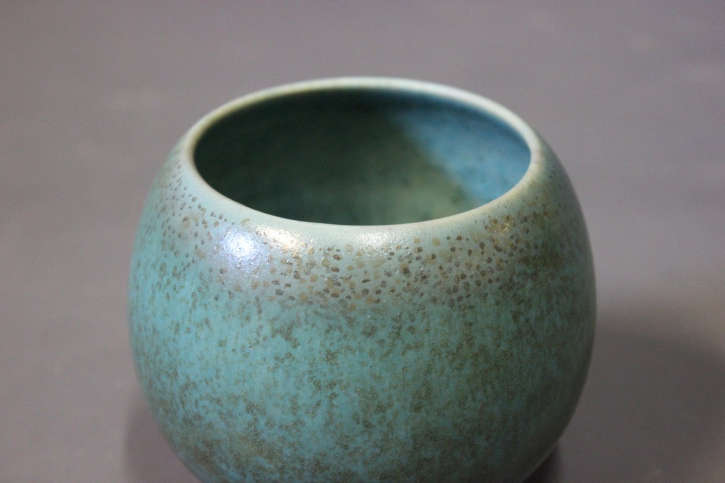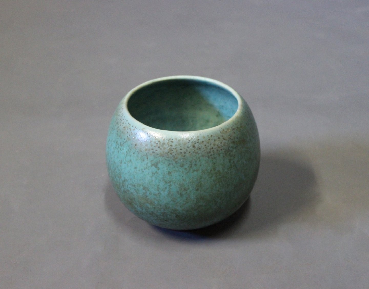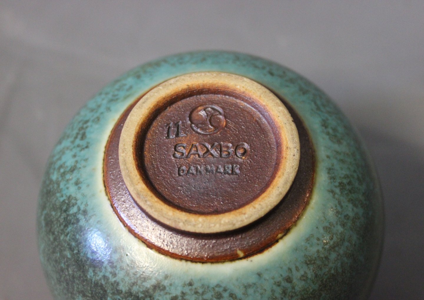 SolgtLille Saxbo vase i turkis glasur og nummeret 11.