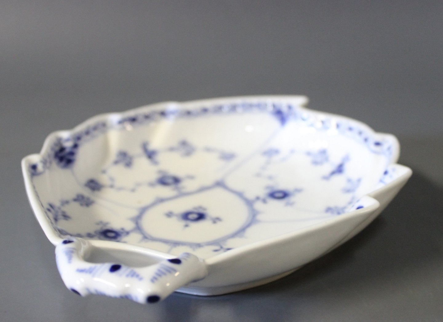 SoldRoyal Copenhagen blue fluted half lace leaf shaped dish, no.: 1/548.