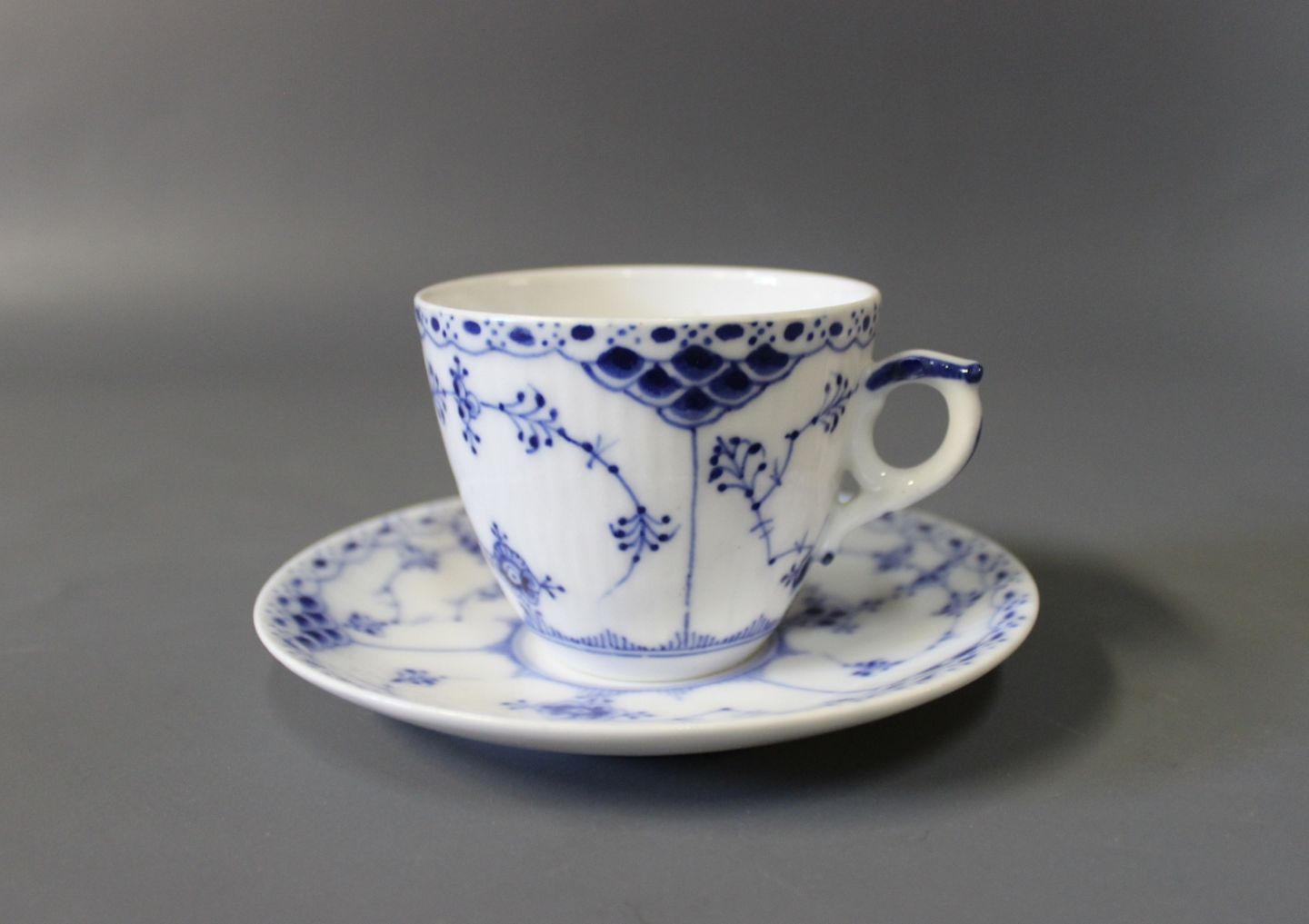 Royal Copenhagen blue fluted half lace small coffee cup with saucer, no.: 1/719.