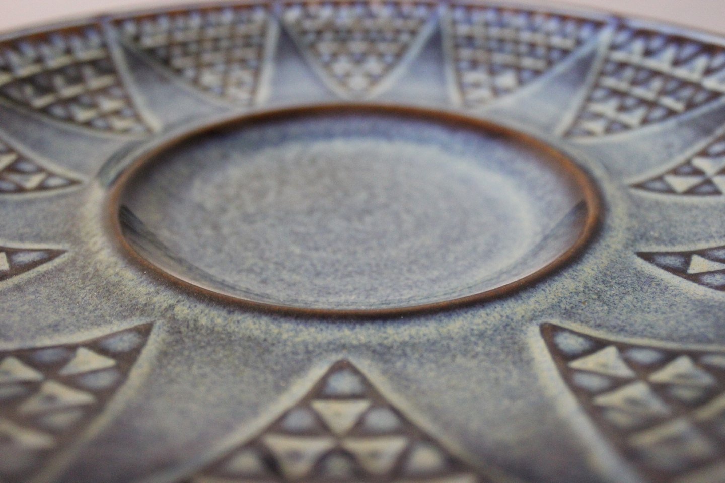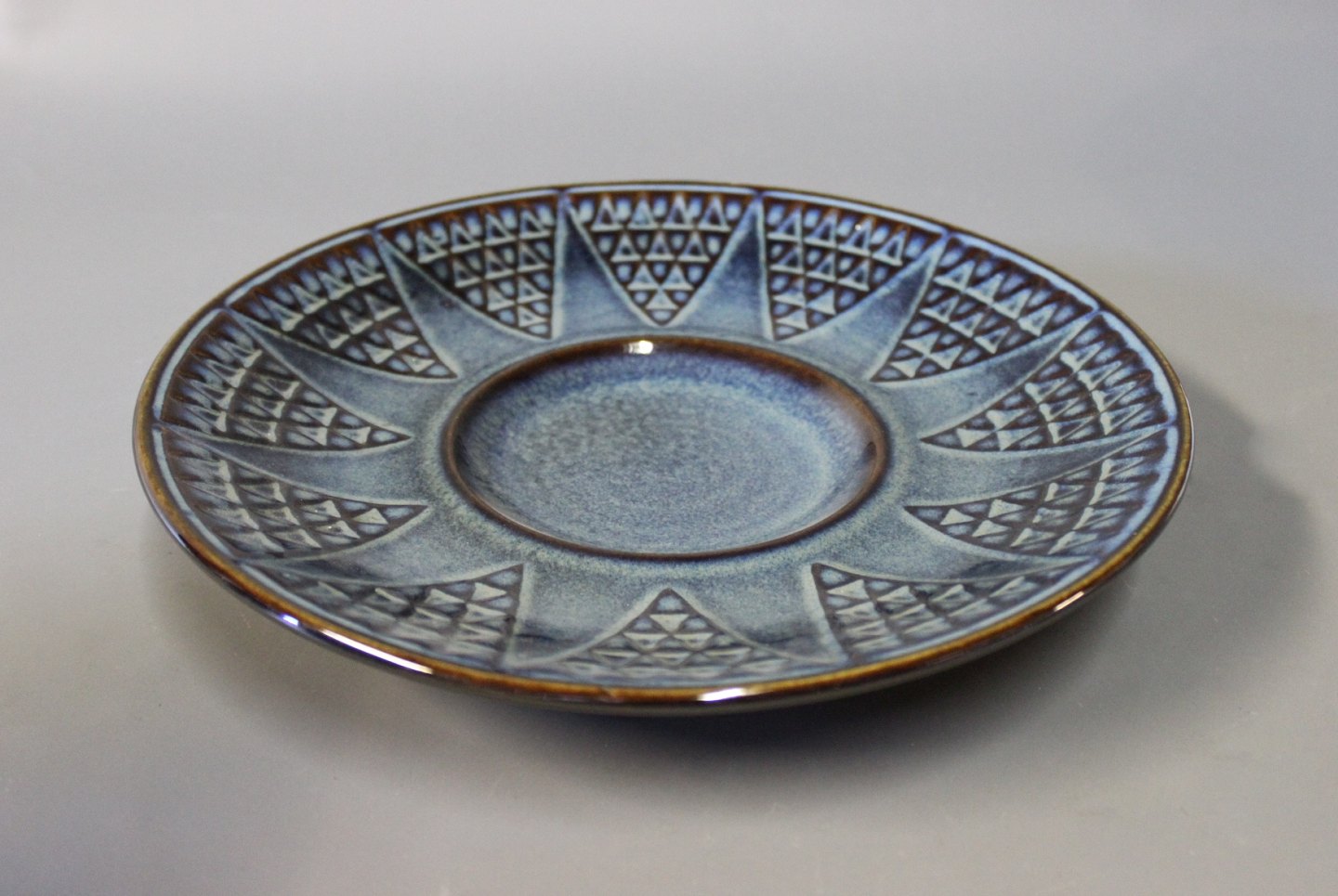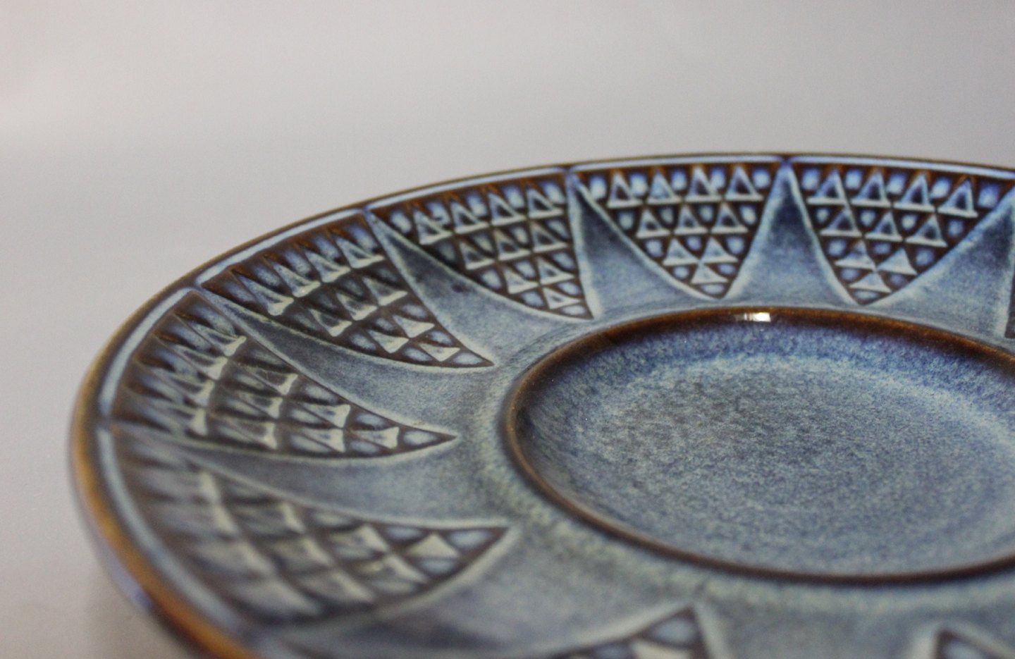 Keramik fad med blå glasur, nr.: 3345 af Søholm.