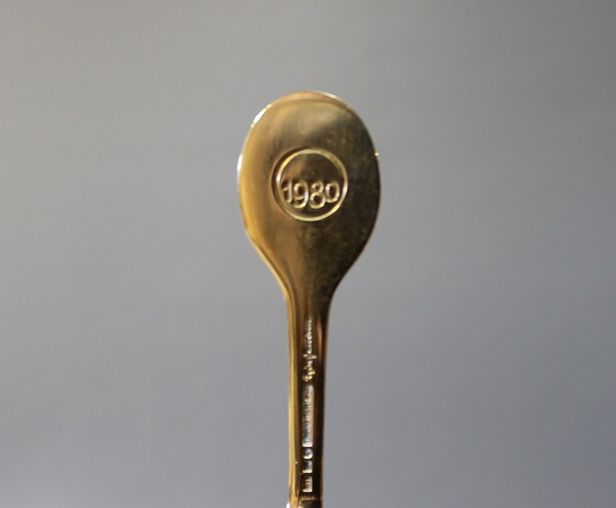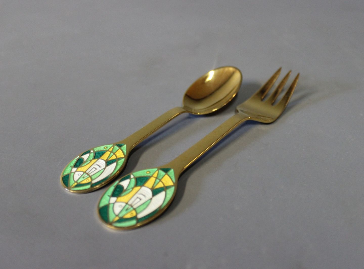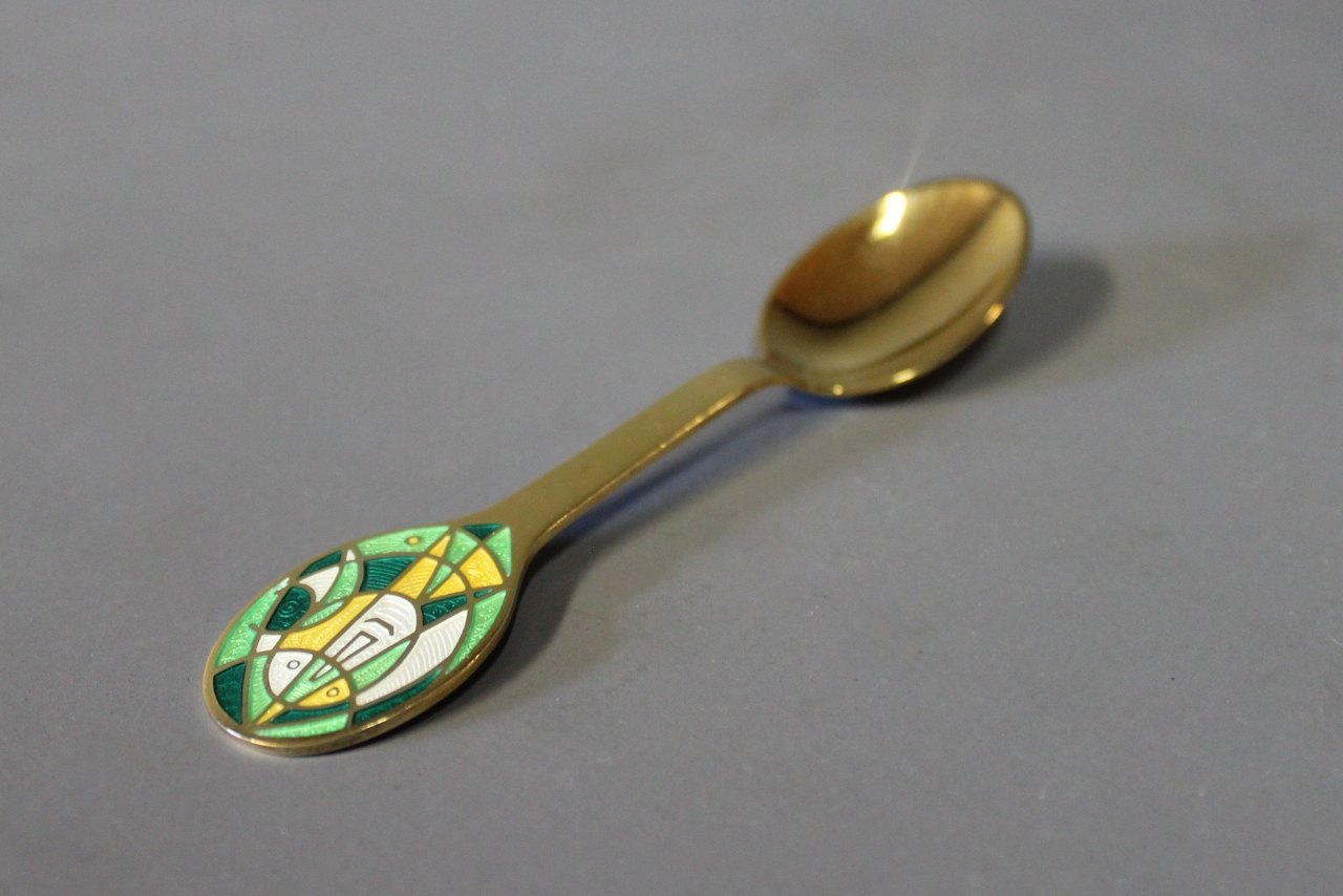 A. Michelsen christmas coffeespoon and christmas cakefork, The Mask - 1980 by Egill Jacobsen.