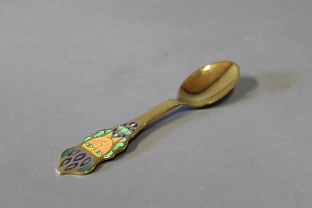 View the price in the text descriptionA. Michelsen christmas coffeespoon and cakefork, The Queen of Saba - 1982 by Kamma Svensson.