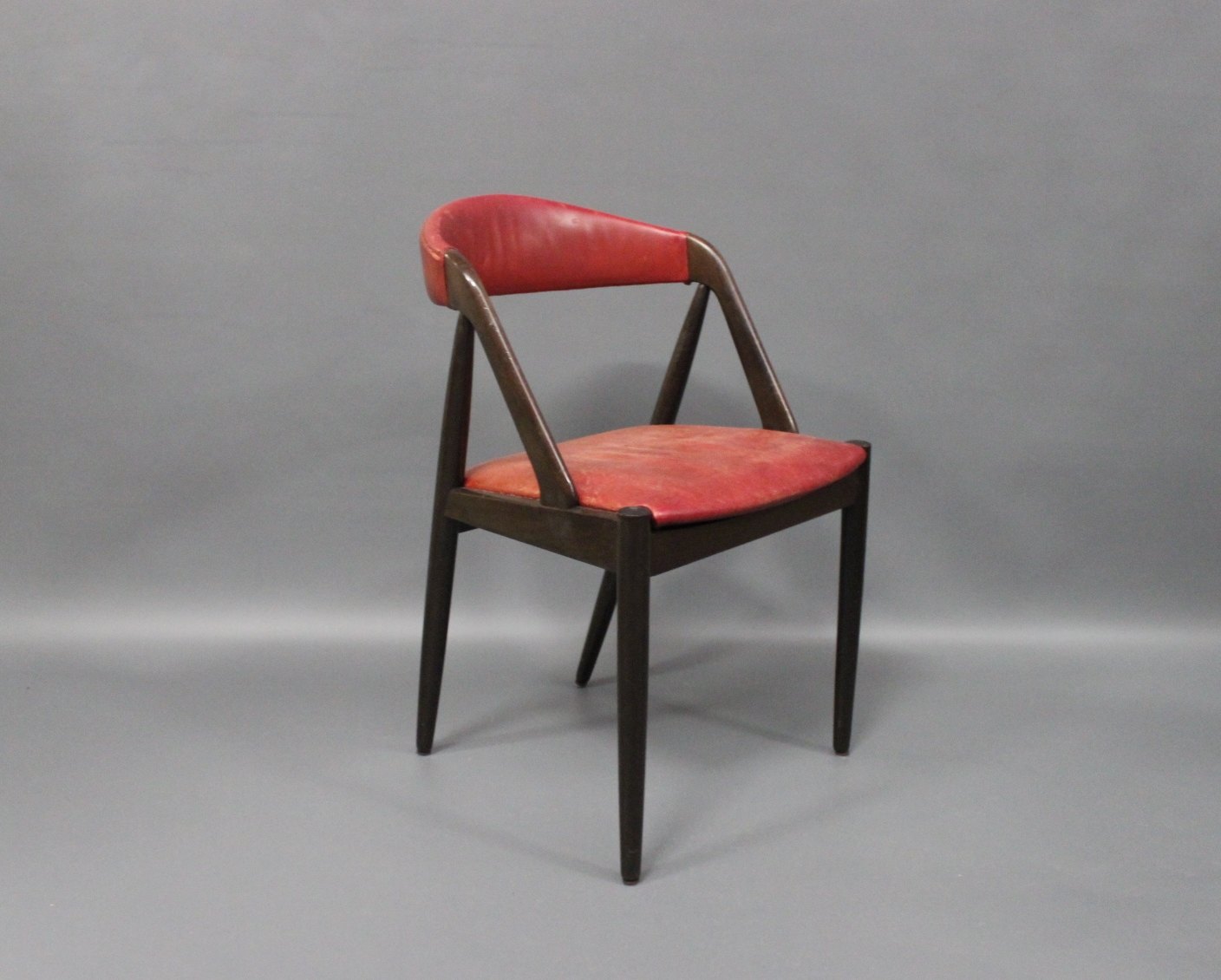 Dette sæt af fire spisestuestole, model 31, er et smukt eksempel på dansk møbeldesign fra midten af det 20. århundrede. Designet af den anerkendte designer Kai Kristiansen i 1956 og fremstillet hos Schou Andersen i 1960'erne, udstråler disse stole en tidløs elegance og enestående håndværksmæssig kvalitet. Stolene er konstrueret af palisandertræ, der giver dem en varm og luksuriøs glød, og de er polstret med rødt læder, hvilket tilføjer en sofistikeret og inviterende touch til ethvert spiseområde. Kai Kristiansens karakteristiske designæstetik, der kombinerer funktionalitet med æstetik, skinner igennem i disse stole, hvilket gør dem til både smukke og komfortable siddepladser.