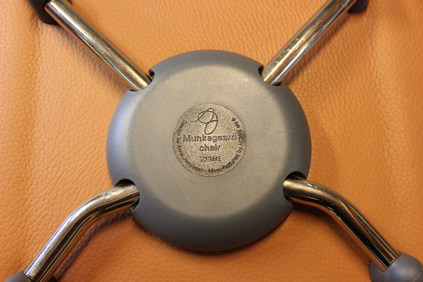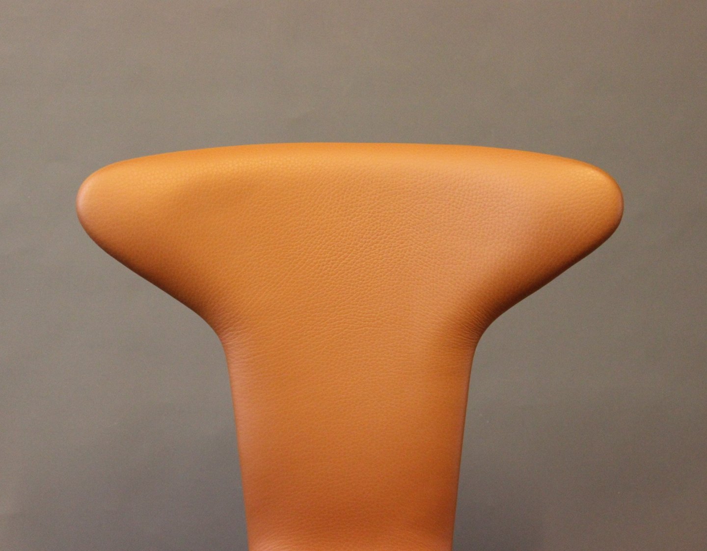 SoldA set of 6 Munkegaard chairs newly upholstered in cognac colored leather designed by Arne Jacobsen in 1955-1957 and manufactured by HOWE.