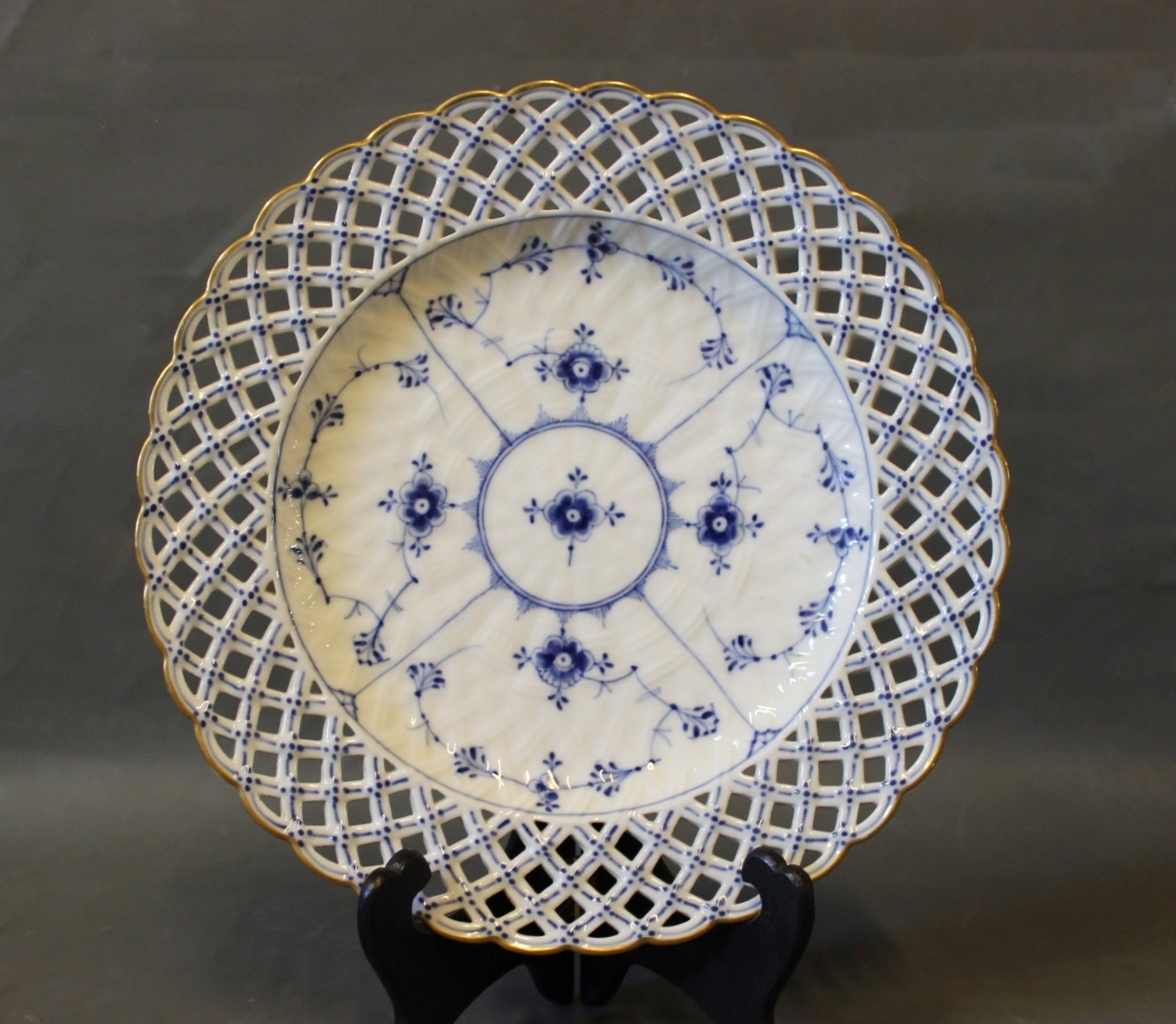 SoldRoyal Copenhagen blue fluted lace plate with cutaway ornamental edging and gilded edge, no.: 1/1098.