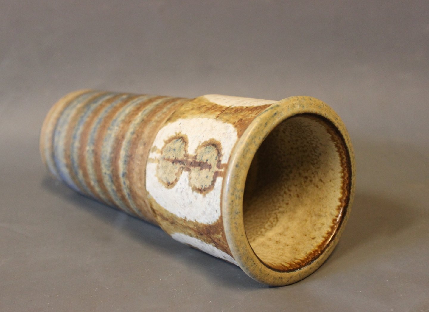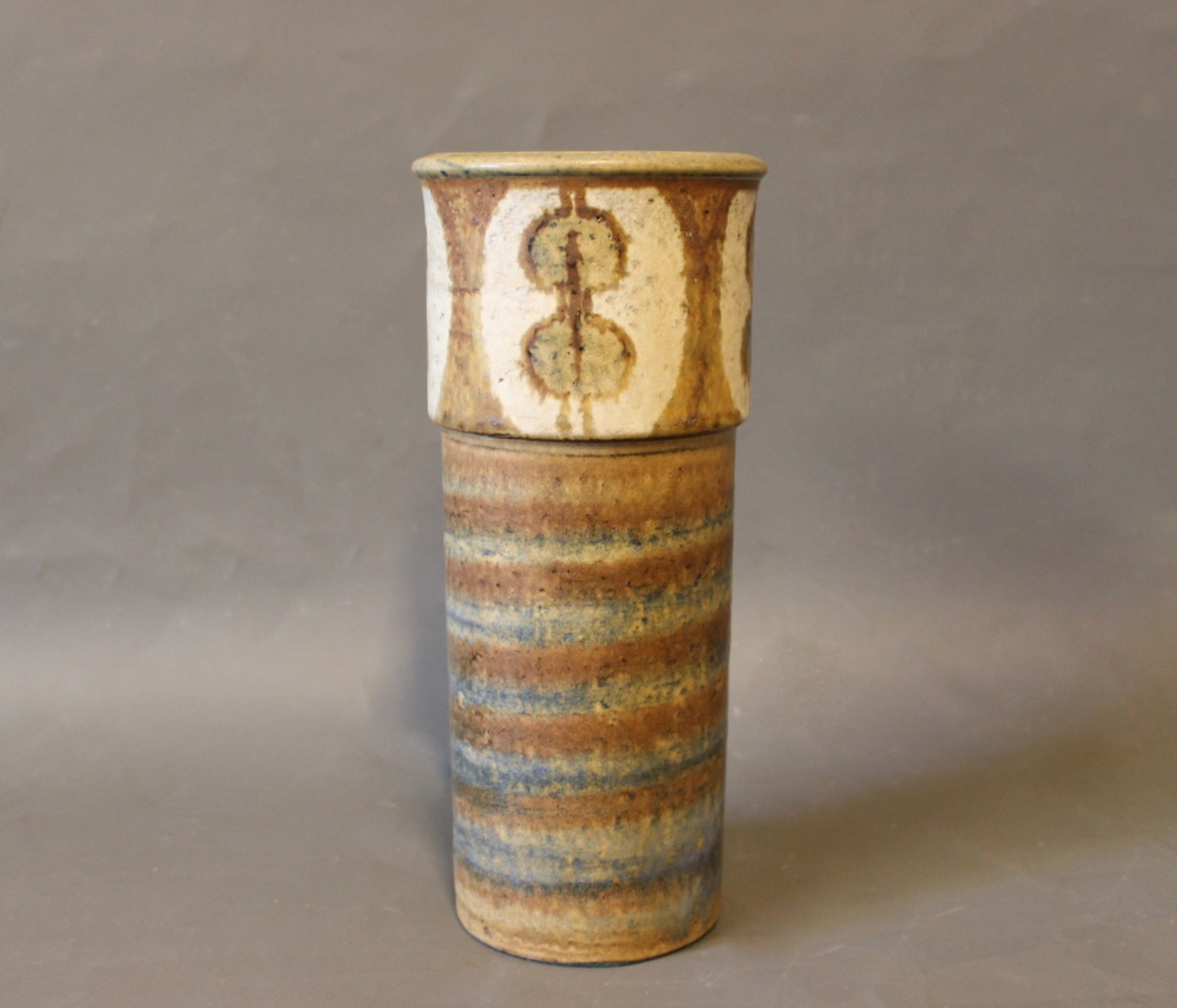 SolgtHøj stentøjvase i lyse farver af Søholm, stemplet nr.: 3602/3.
