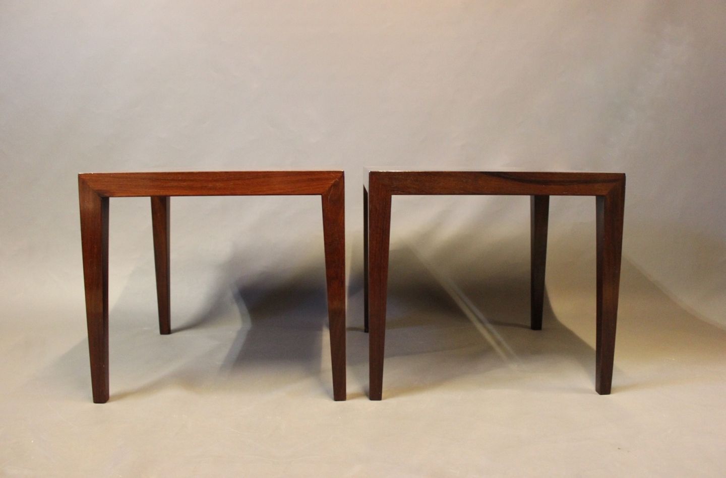 SoldA pair of sidetables in rosewood designed by Severin Hansen and manufactured by Haslev furniture factory in the 1960s.