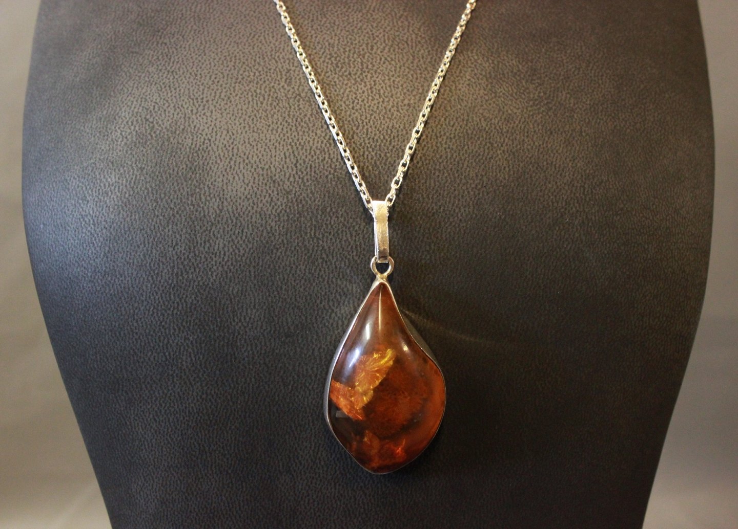 Halsvedhæng samt kæde af 925 sterling sølv og rav, stemplet HS.