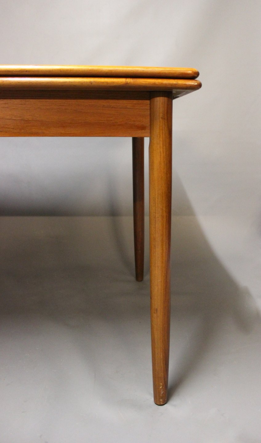 SoldDining table in teak with extensions and of danish design from the 1960s.