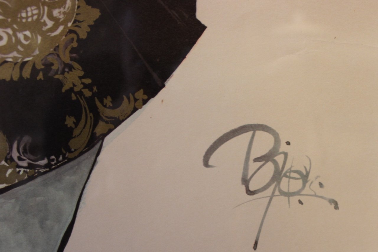 Lithographic print signed by Bjørn Wiinblad in silver frame.