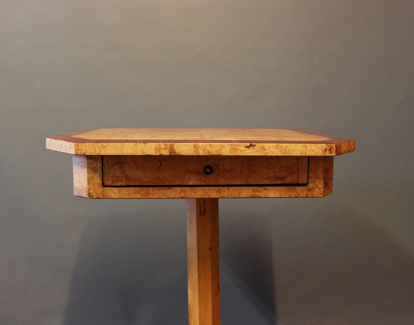 SoldLamp table in birch with inlaid wood from the 1840s. The table is in great vintage condition.