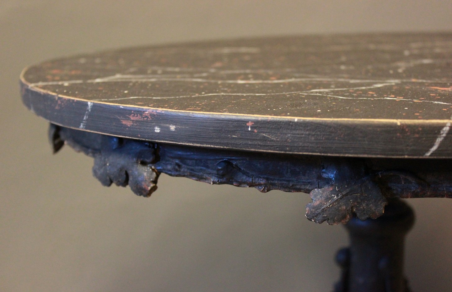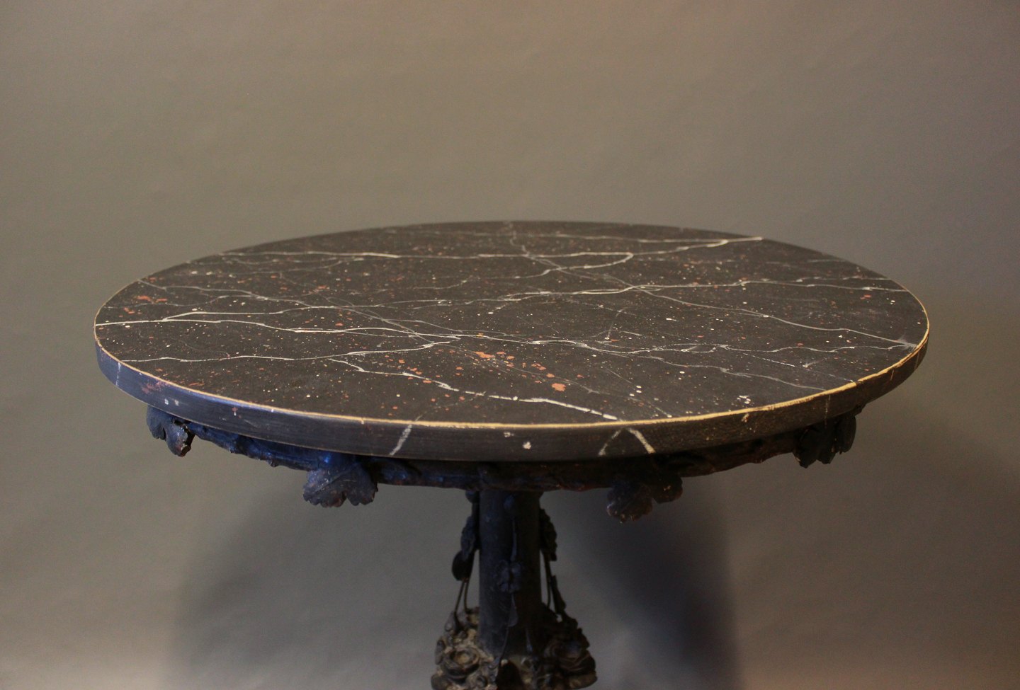 SoldRound side-/lamptable with black marbled tabletop in the style of Gustavian from around the year 1880.