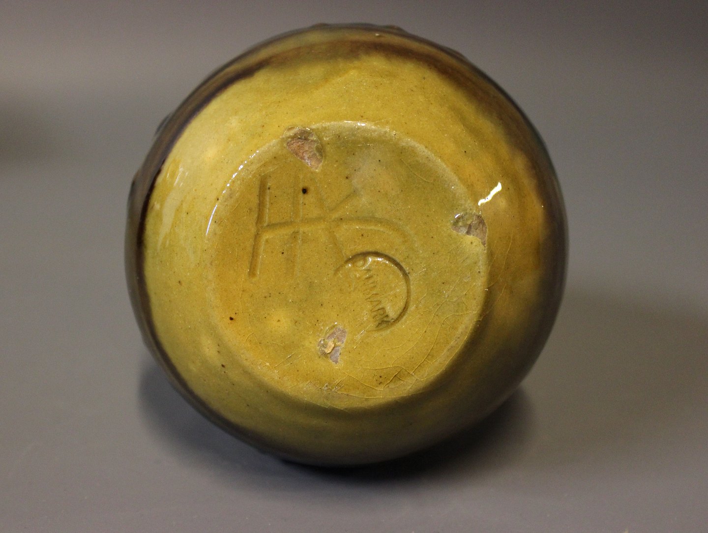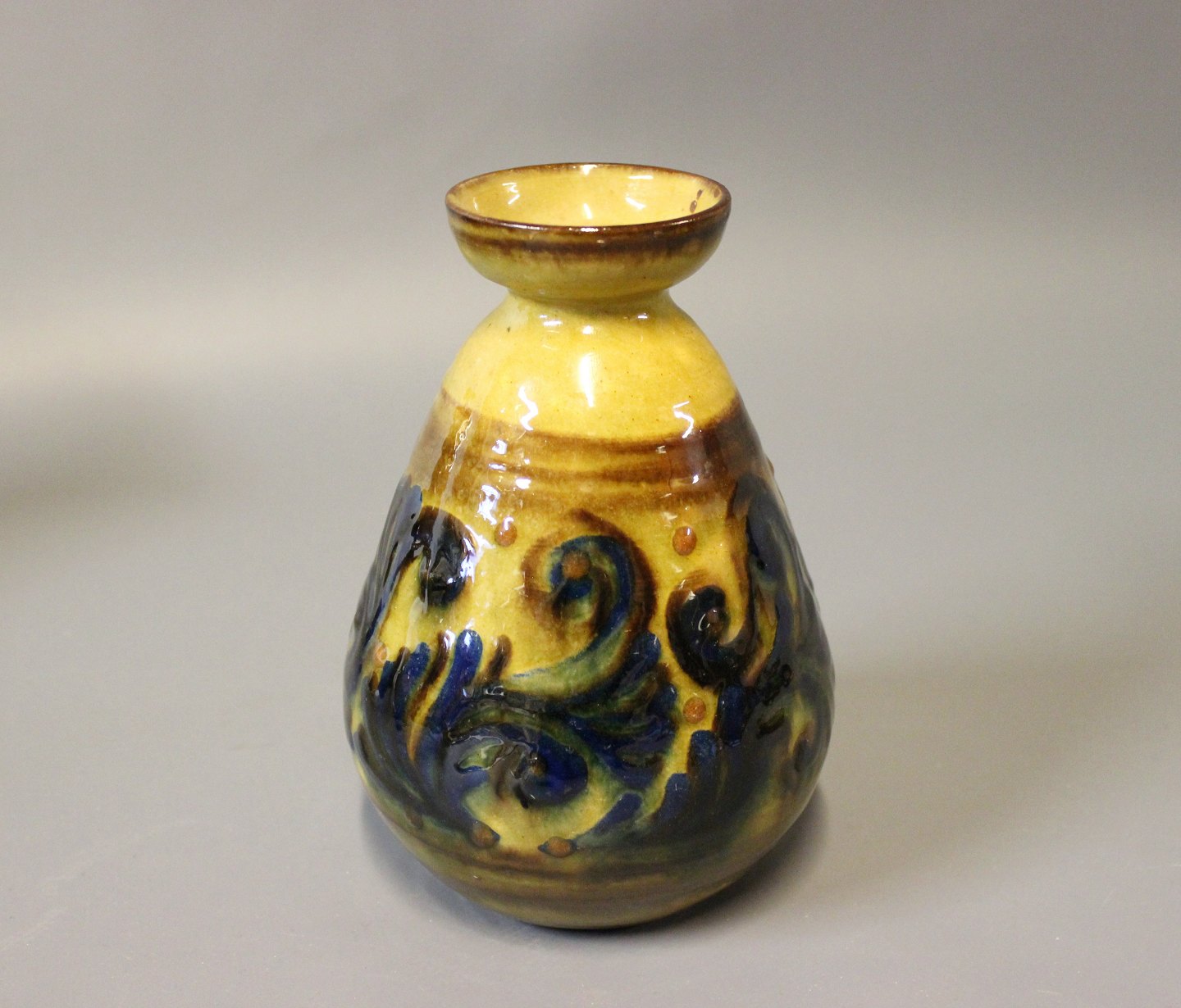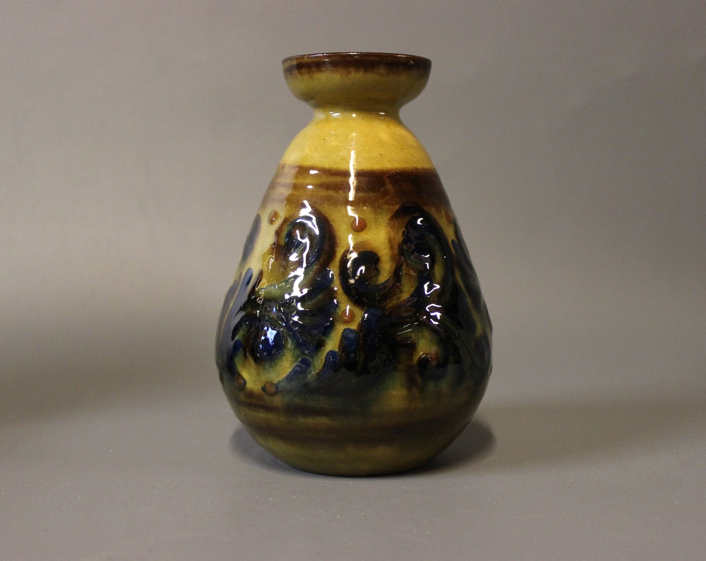 SoldCeramic vase in yellow and blue glaze by Herman A. Kähler.