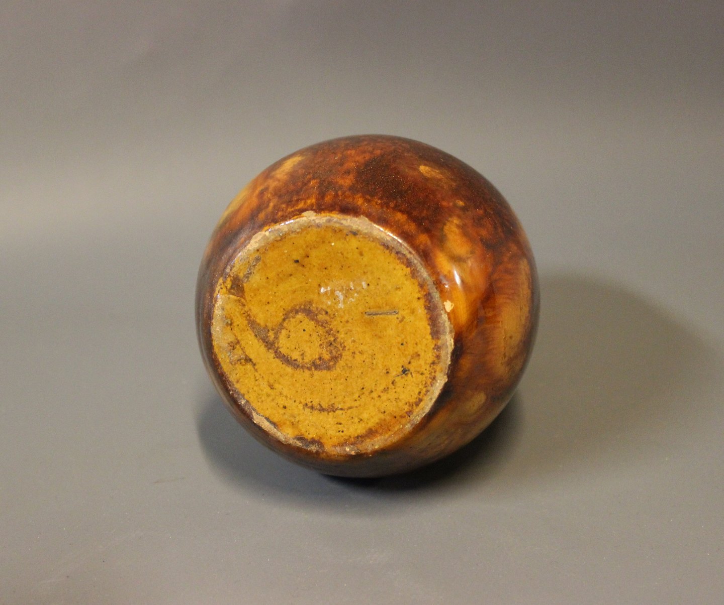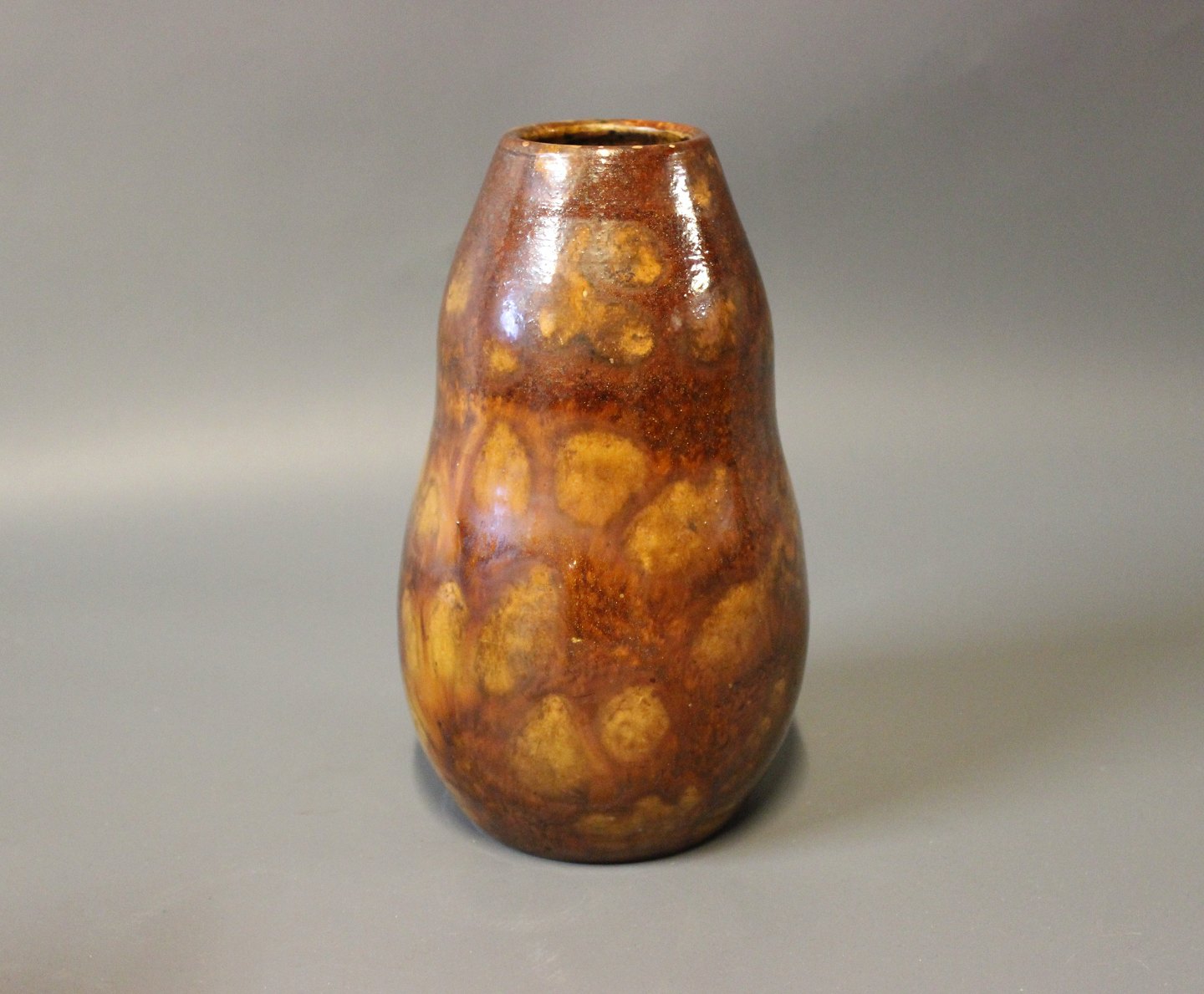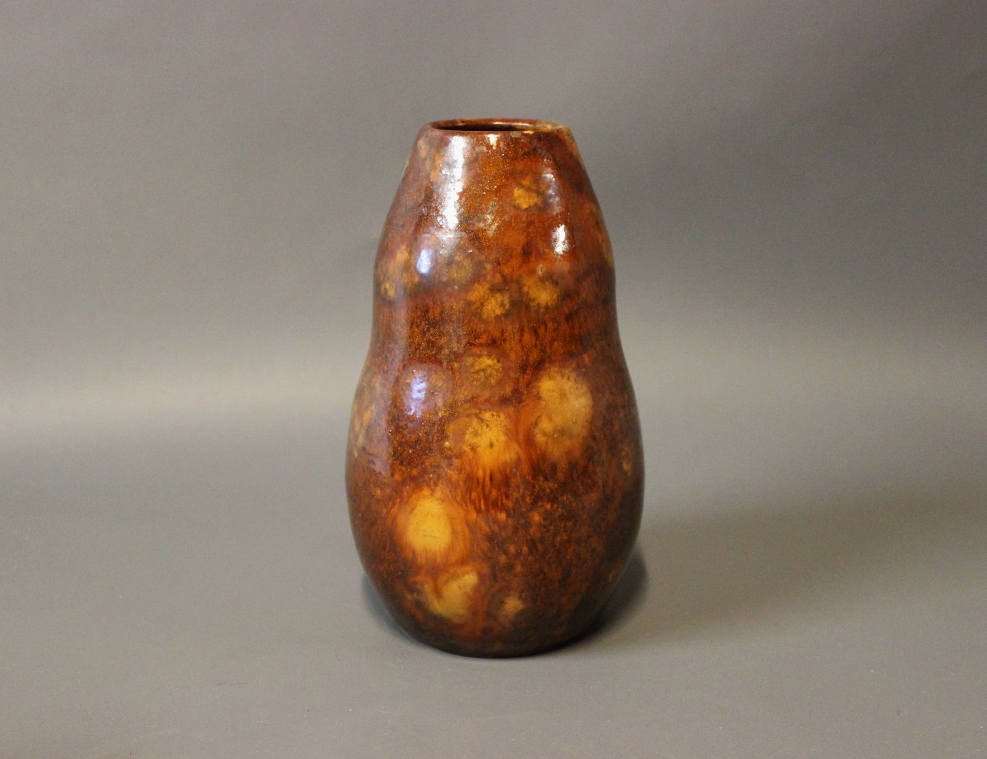 Keramik vase i brune farver og med glimmer i glasuren af ukendt kunster.