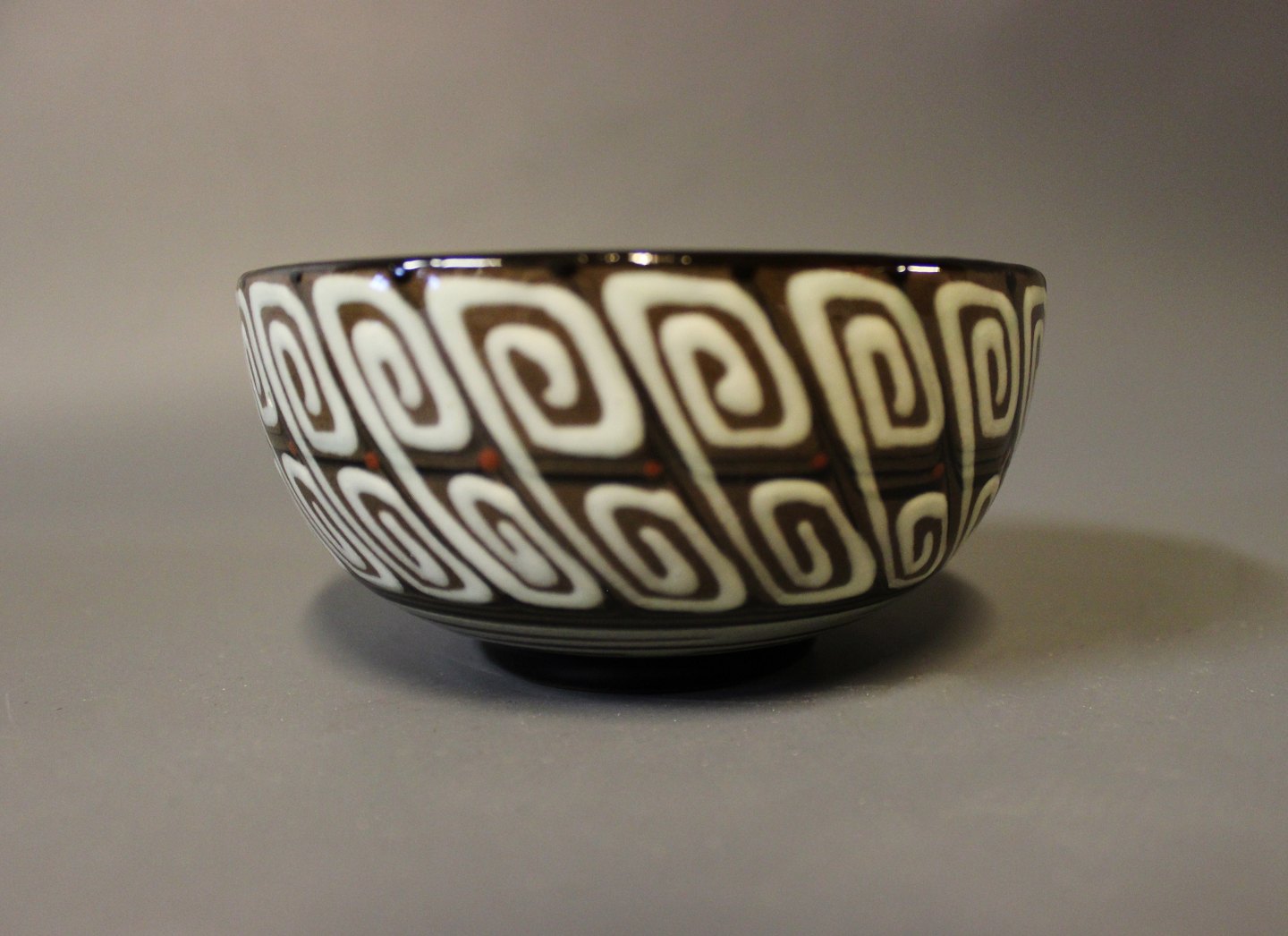 SoldSmall brown ceramic bowl with white pattern by Herman A. Kähler.