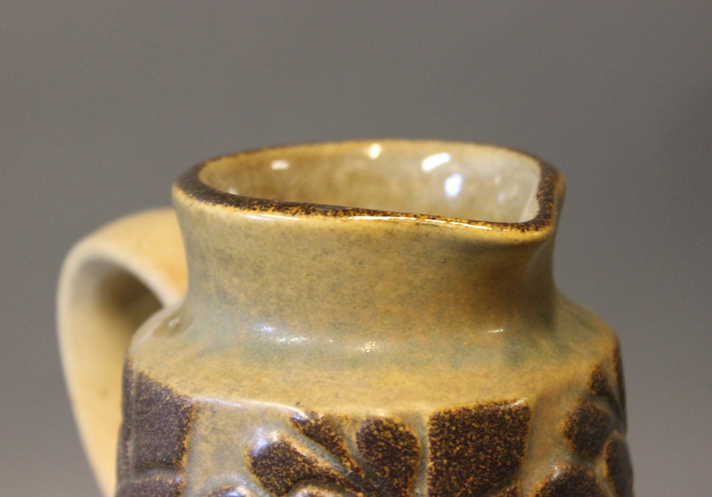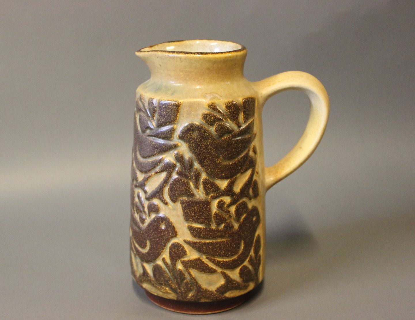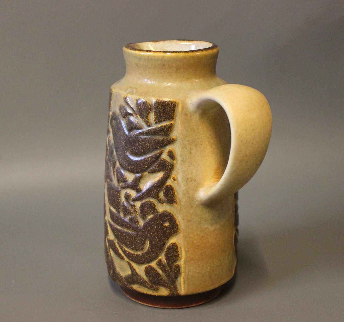 Ceramic jug in brown colors with bird motifs by Michael Andersen & Son, numbered 6427.