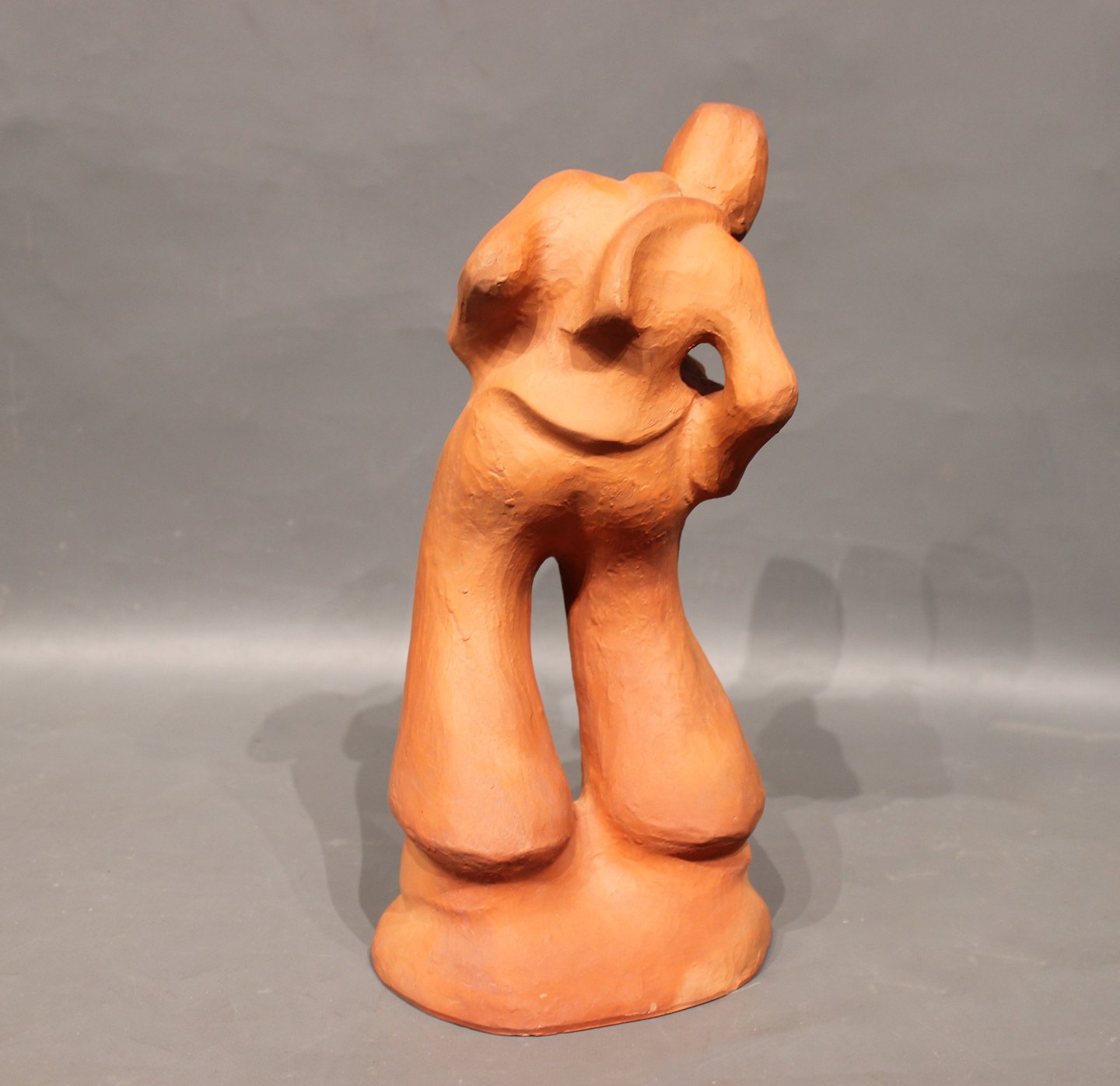 Large wooden figure of a man with an accordion by an unknown artist from around the 1960s.
