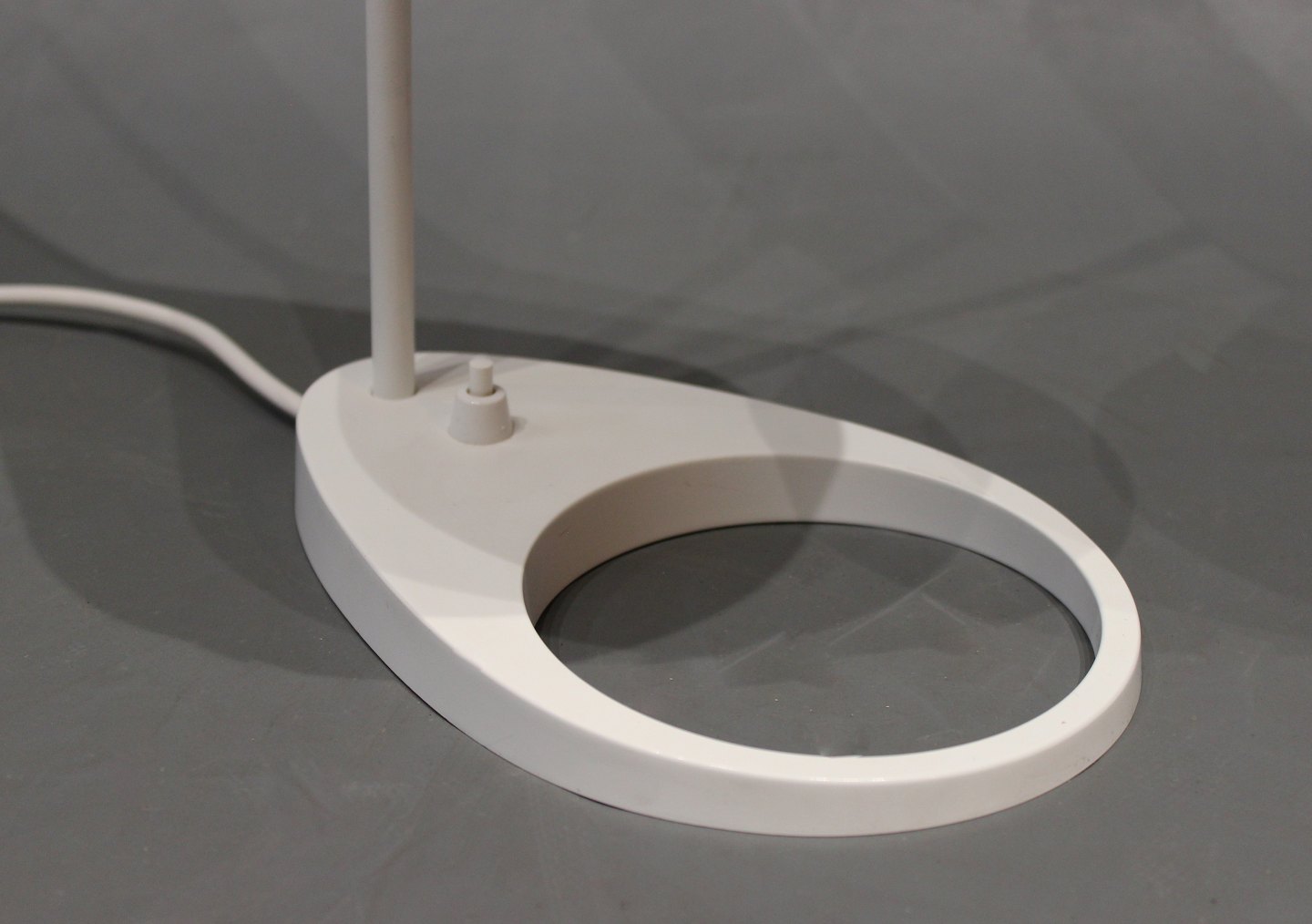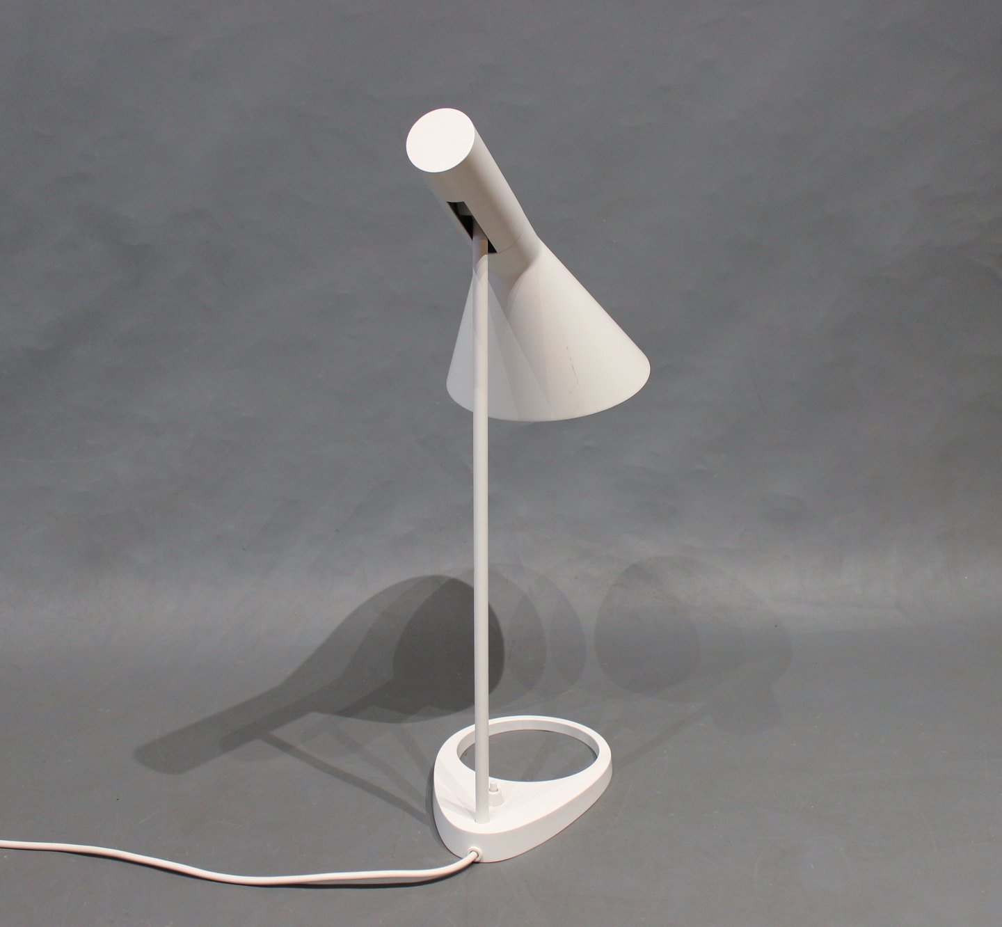 SoldArne Jacobsen, white tablelamp, designed in 1960 and manufactured by Louis Poulsen. The lamp is in great vintage condition.