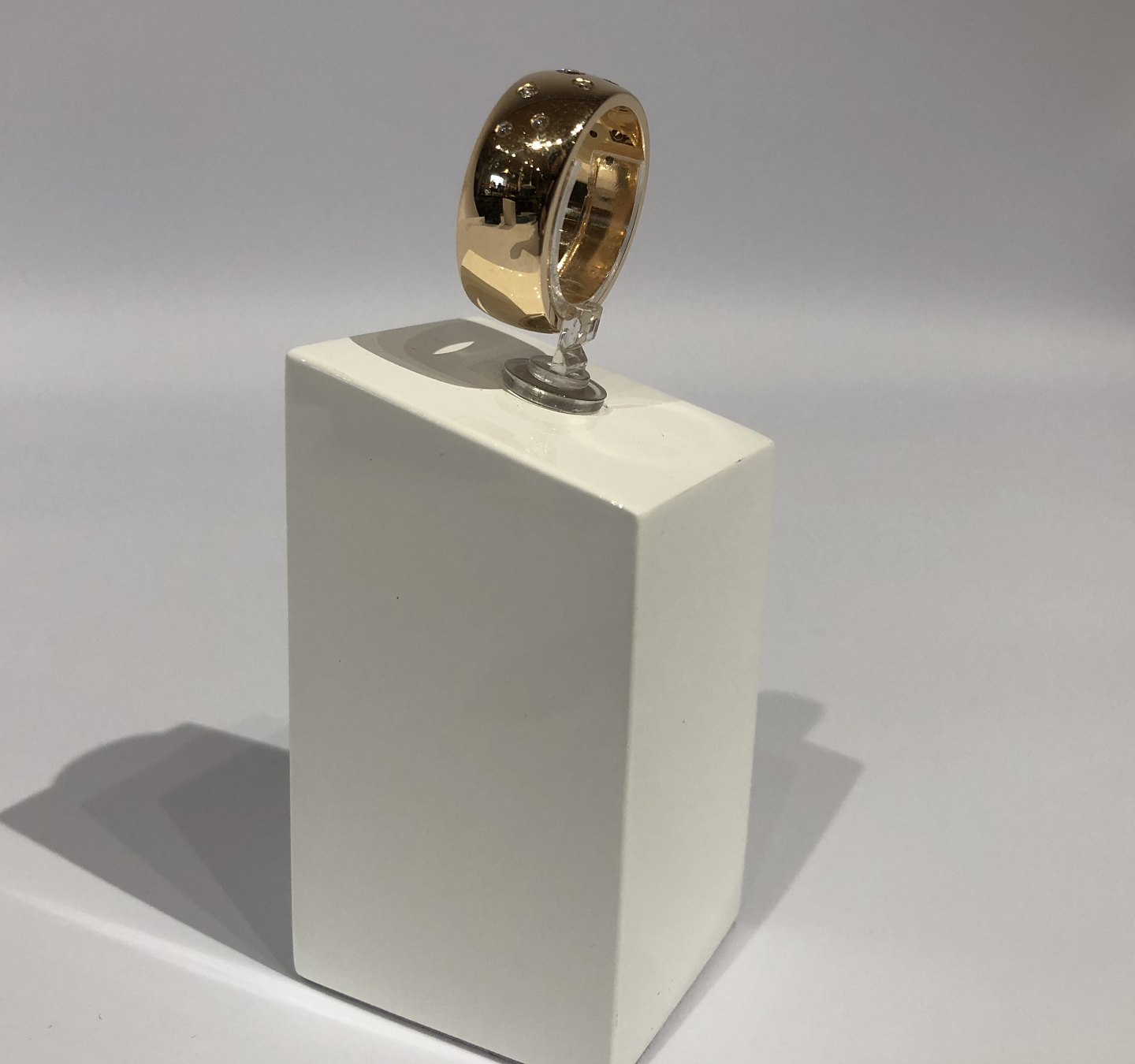 SoldBeautiful wide ring in 14 ct. gold with small diamonds.