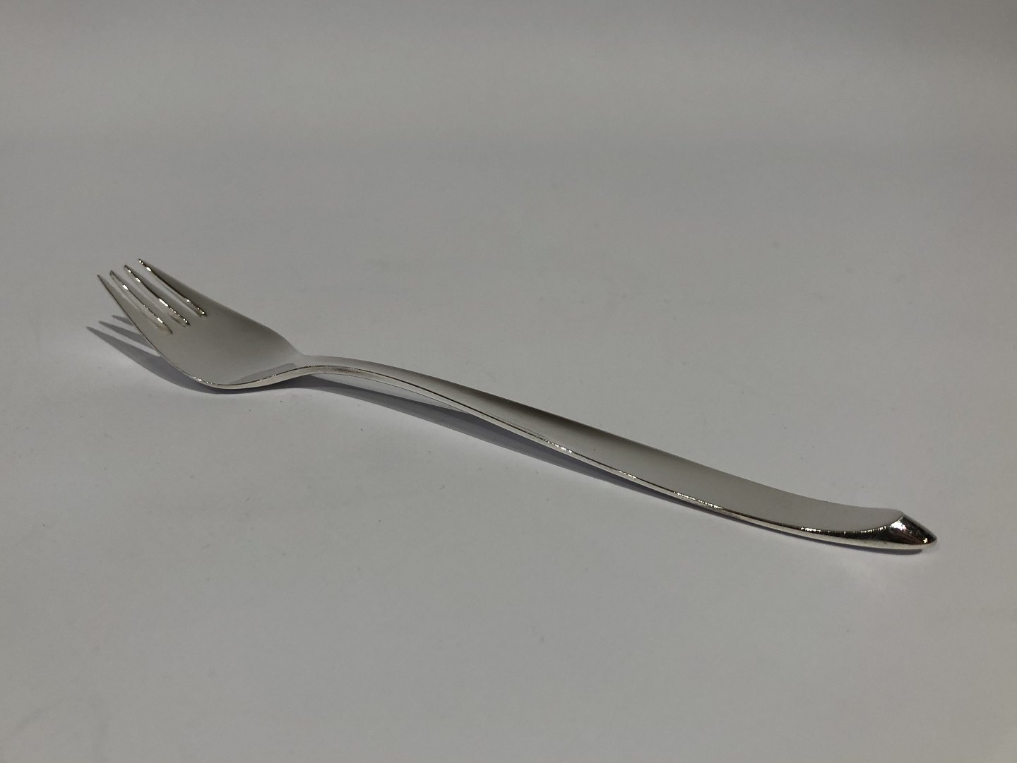 Barnebestik bestående af gaffel, kniv og ske i tretårnet sølv.