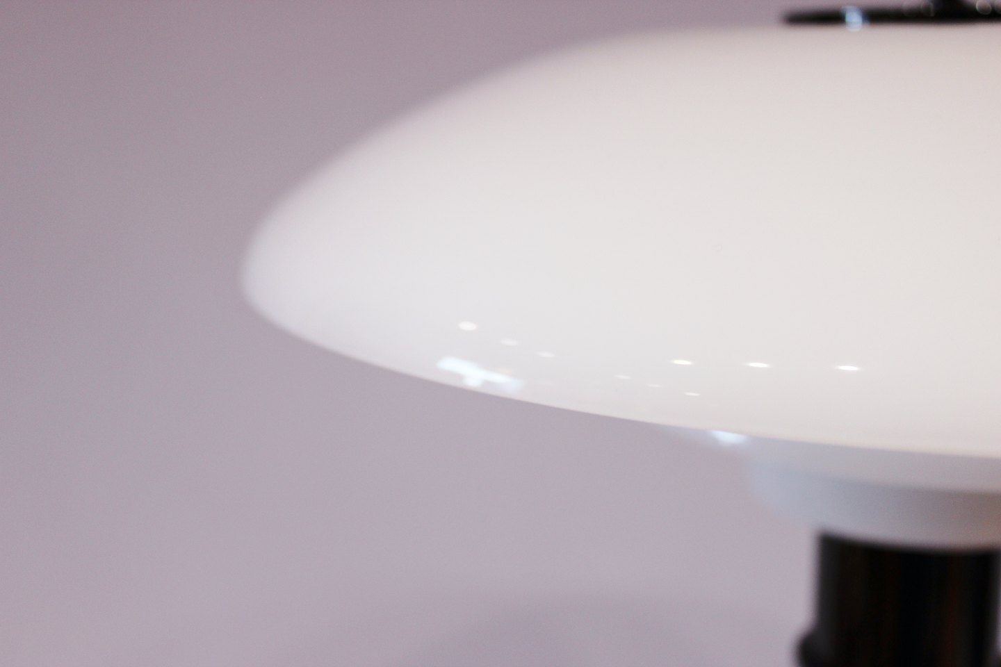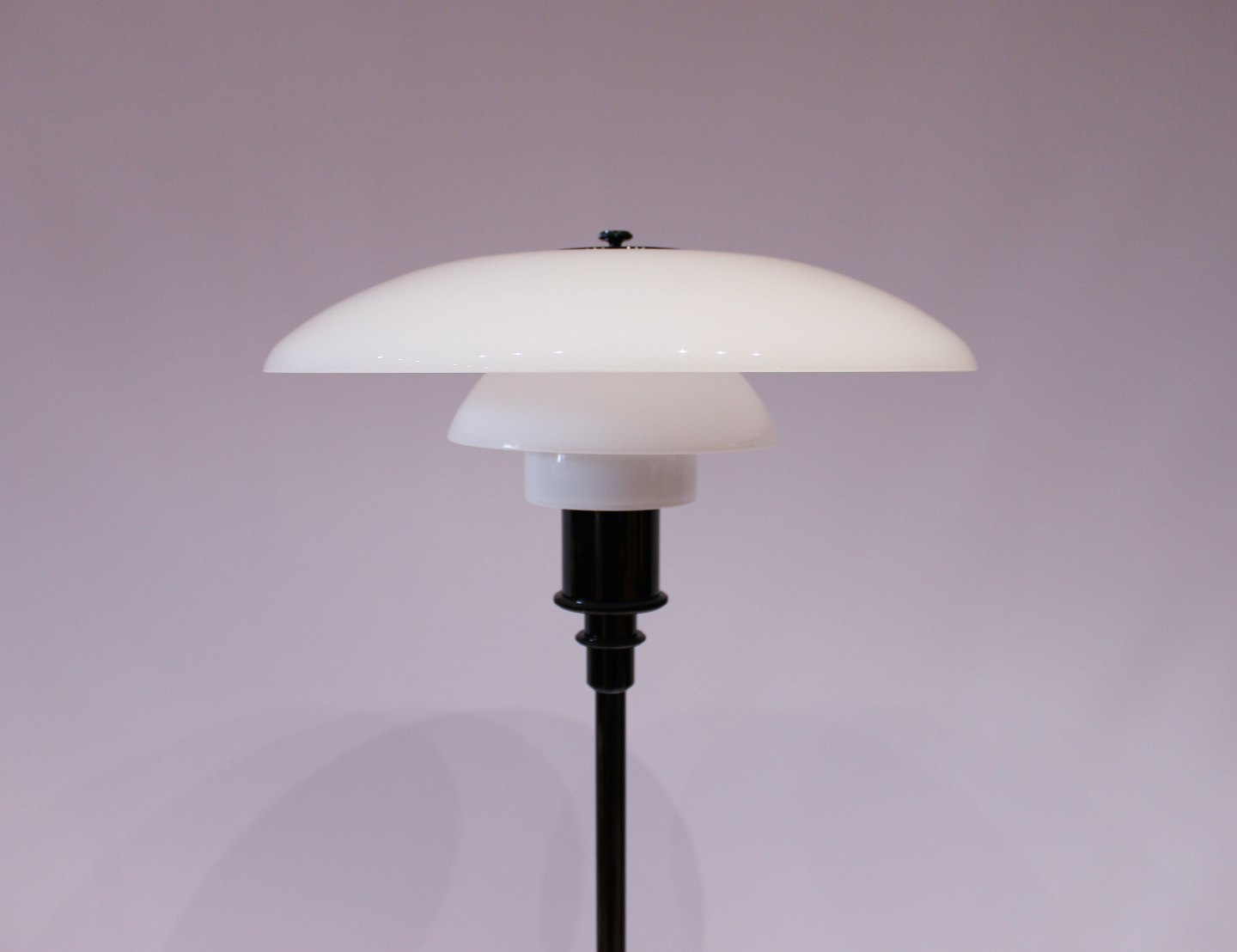 PH 3½-2½ gulvlampe med stel af sort metalliseret messing og stål designet af Poul Henningsen og fremstillet af Louis Poulsen.