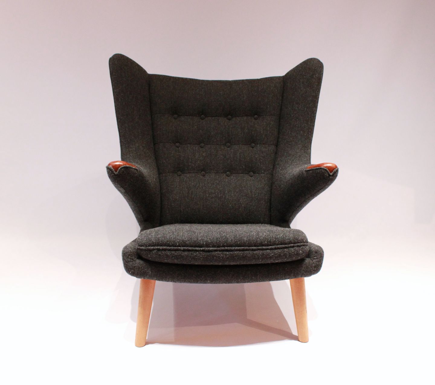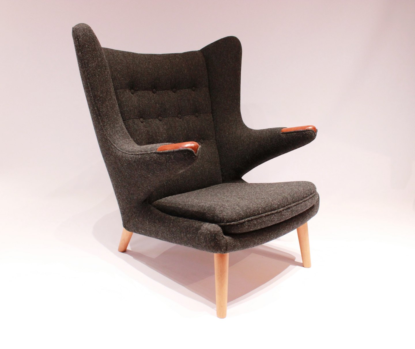 SoldPapa Bear chair, model AP 19, designed by Hans J. Wegner in 1951 and manufactured by A.P. Møbler. We can upholster the chair in any fabric to your liking, legs and paws are of teak.